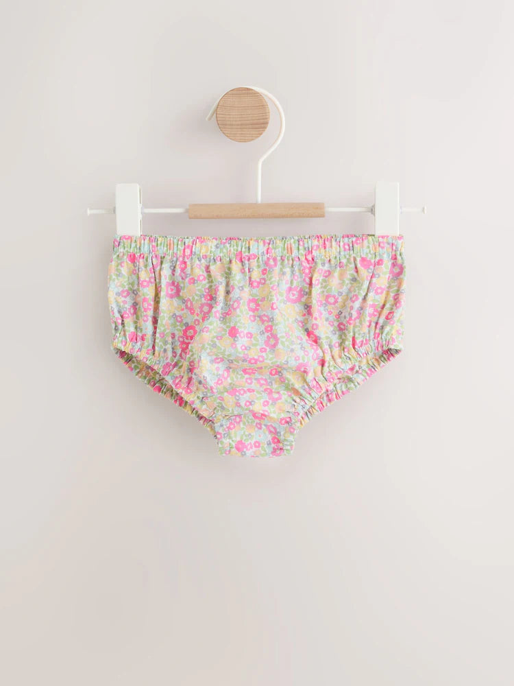 |BabyGirl| Conjunto De Vestido e Calcinha De Bebê Em Tecido Rosa Floral (2 peças, 0 meses a 2 anos)
