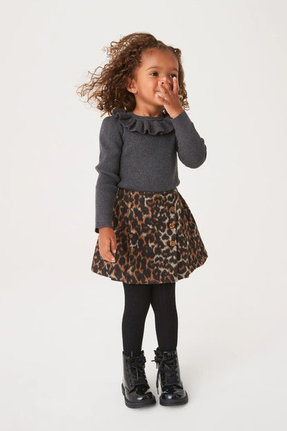 |BabyGirl| Conjunto Saia Xadrez e Meia - Animal (3meses-10anos)