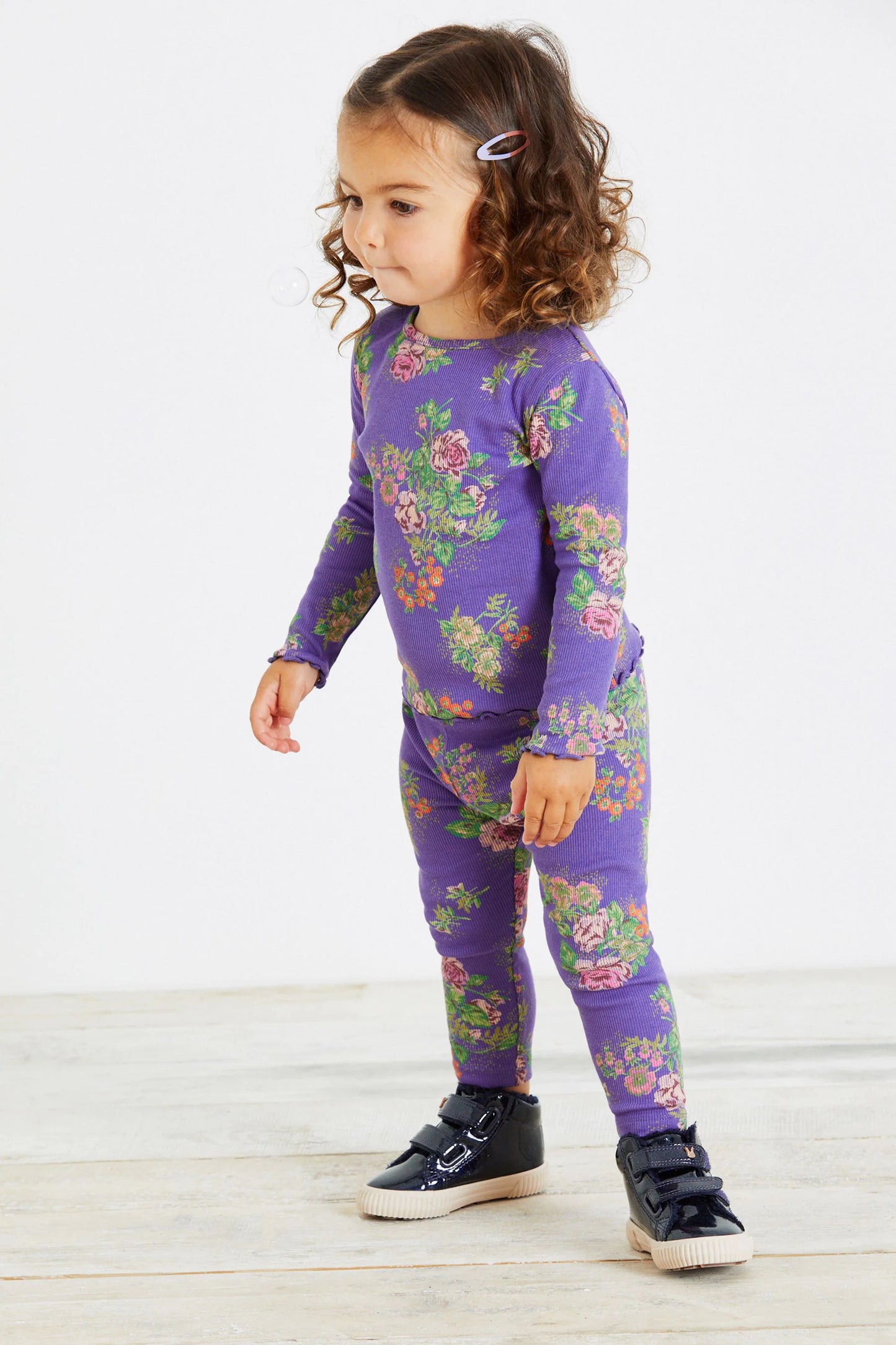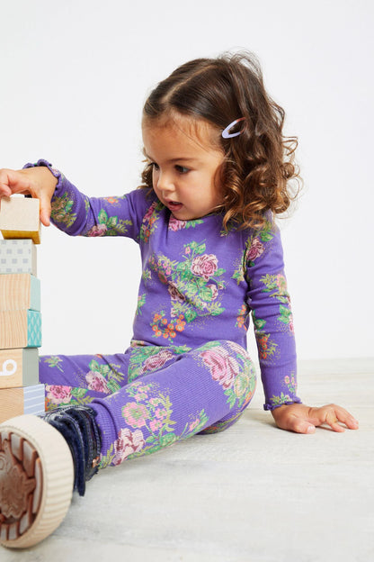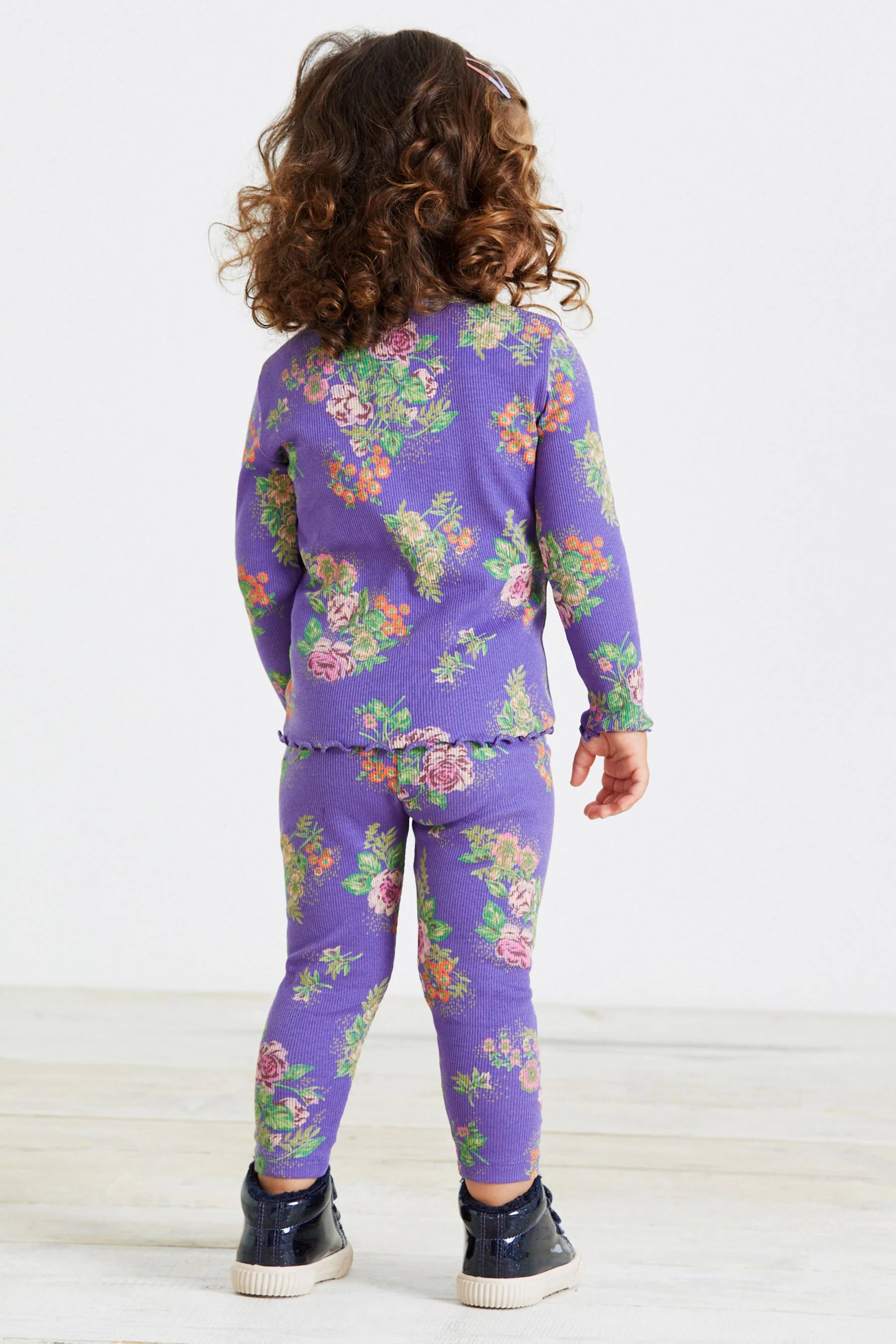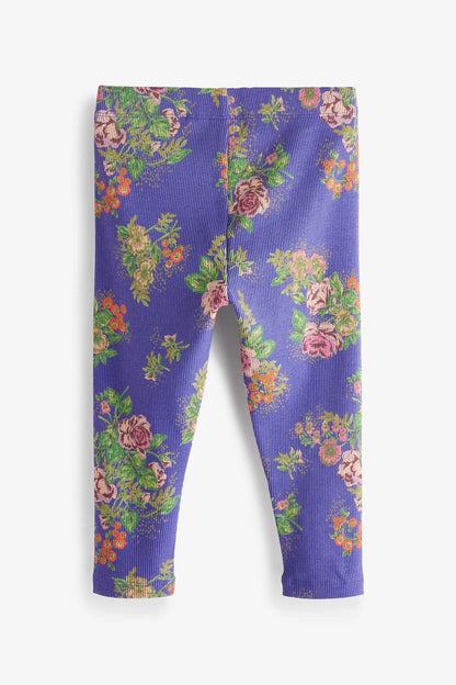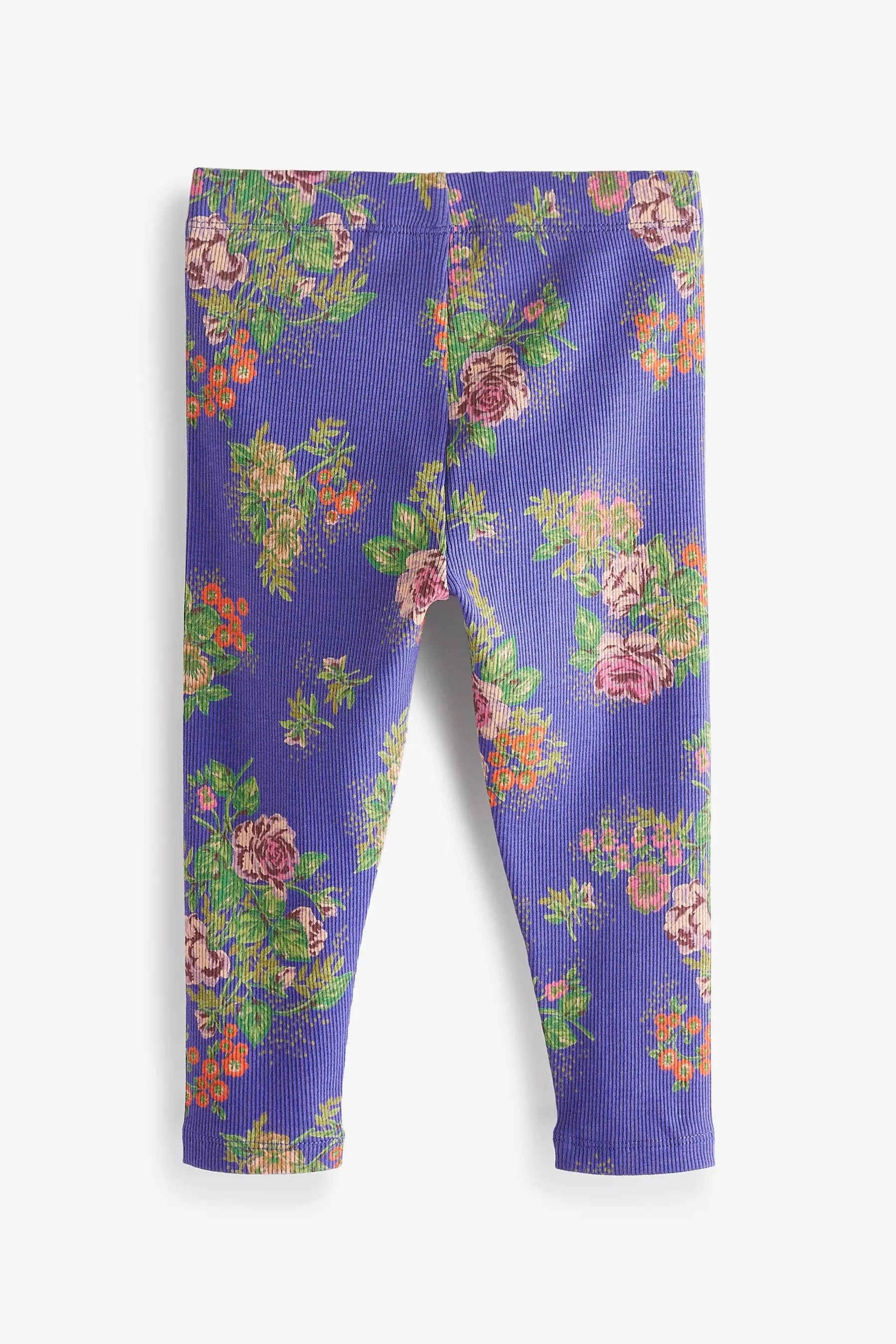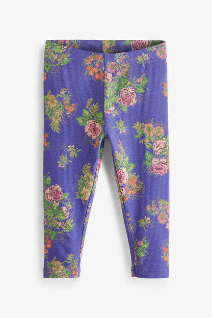 |BabyGirl| Legging Rib Jersey Floral - Azul (3meses-7anos)