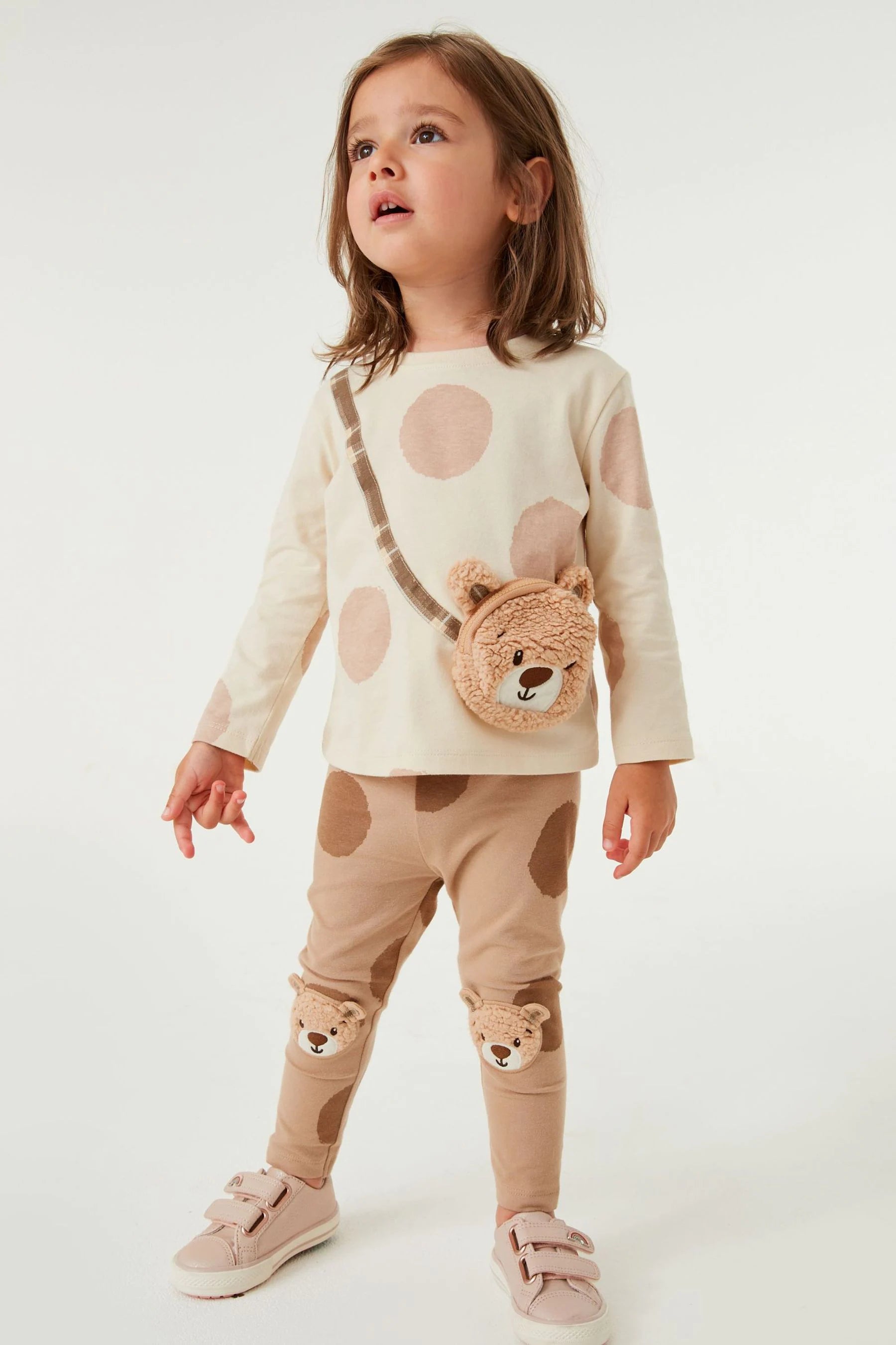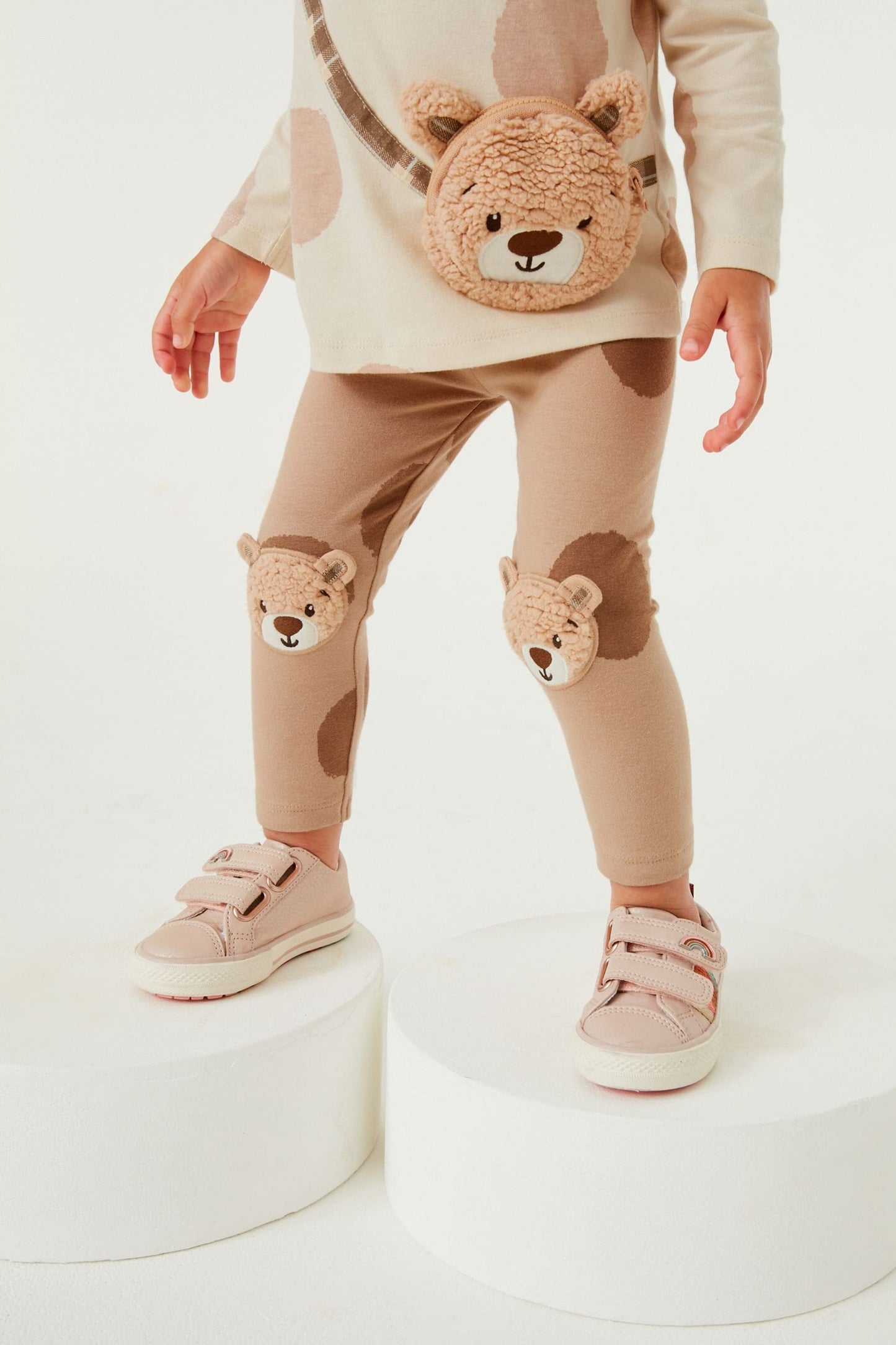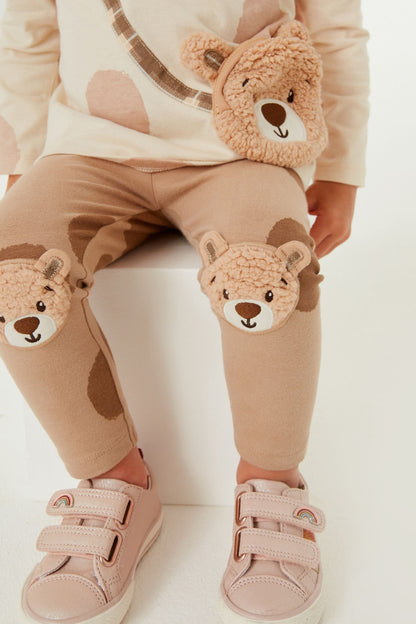 |BabyGirl| Leggings Bordadas - Urso Marrom (3meses-7anos)