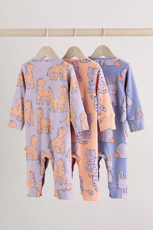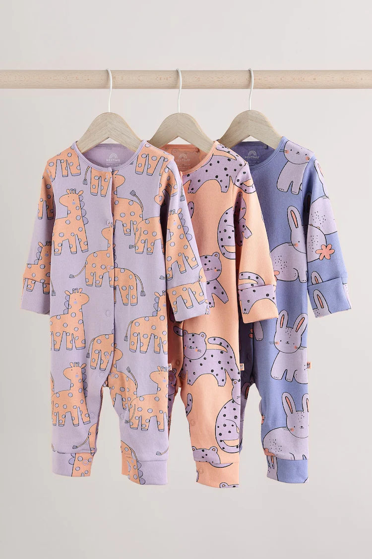 |BabyGirl| Lilás Roxo Bebê Brilhante Sem Pés Pijamas Pacote Com 3 (0 meses-3 anos)