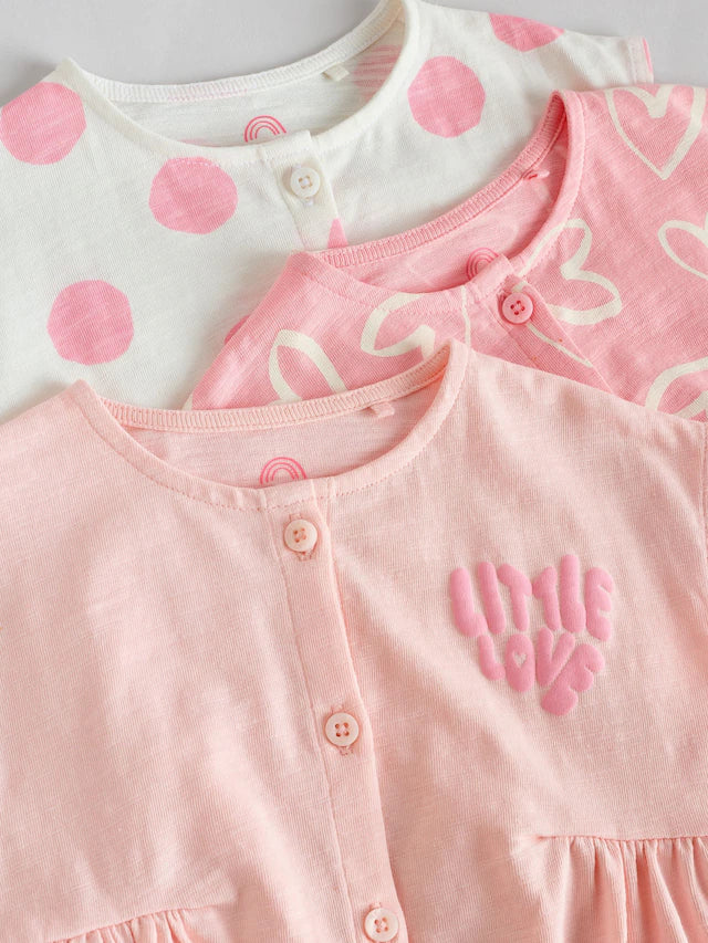 |BabyGirl| Macacão De Bebê Rosa e Branco, Pacote Com 3