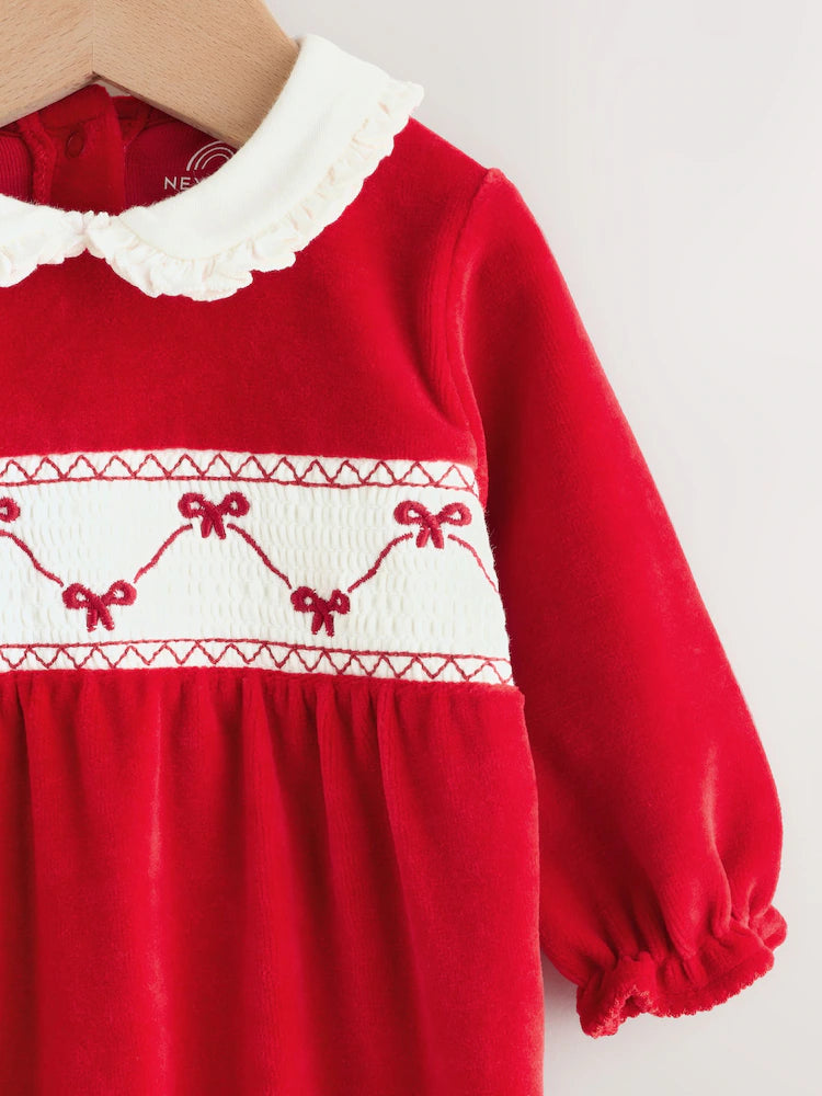 |BabyGirl| Macacão De Dormir De Veludo Com Laço Vermelho Para Bebê (0 meses a 2 anos)