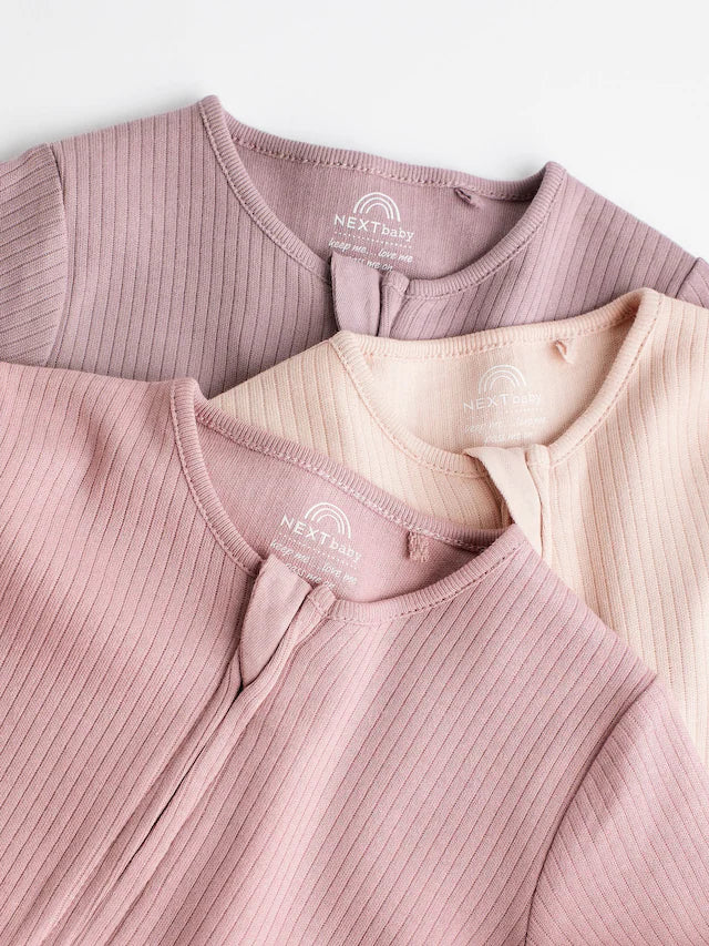 |BabyGirl| Macacão De Dormir Para Bebê 100% Algodão Rosa Com Zíper Bidirecional, Pacote com 3 (0 meses a 3 anos)