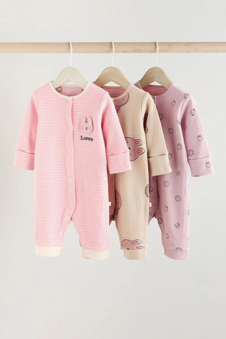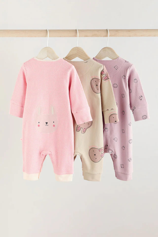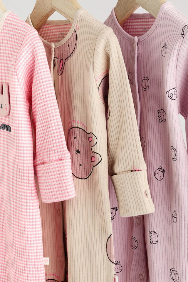 |BabyGirl| Macacão De Dormir Sem Pés Pink Baby Bright, Pacote Com 3 Unidades (0 meses a 3 anos)