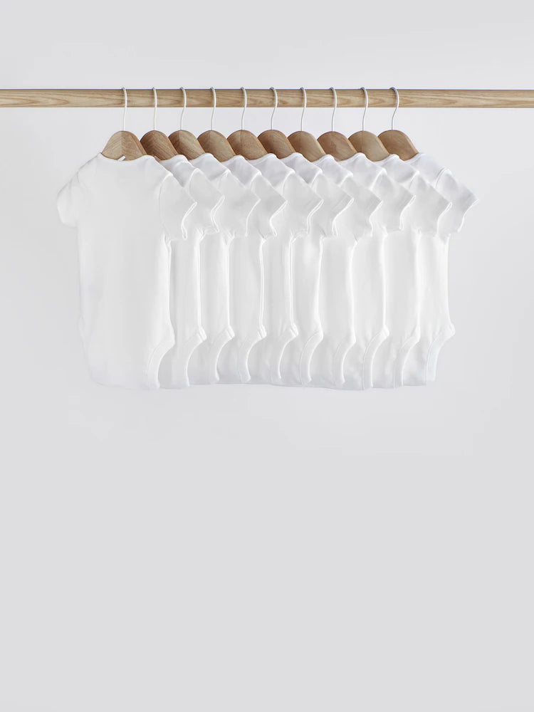 |BabyGirl| Pacote Com 10 Macacões De Manga Curta Para Bebês, Essenciais Brancos