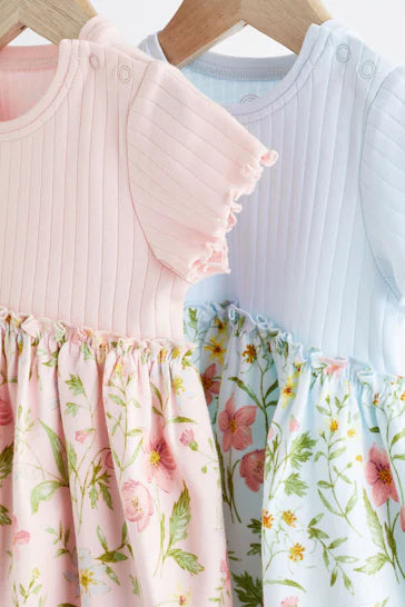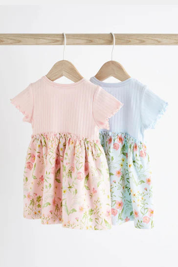 |BabyGirl| Pacote De 2 Vestidos De Jersey Para Bebê - Rosa e Azul (0 meses a 3 anos)