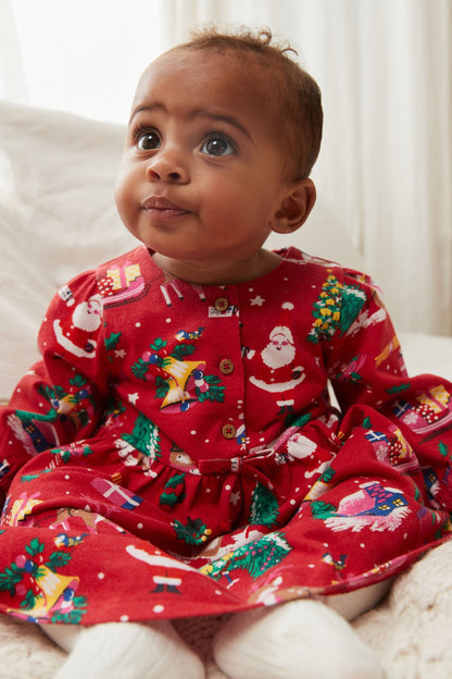 |BabyGirl| Vestido em Jersey Natal - Vermelho - (0meses-2anos)