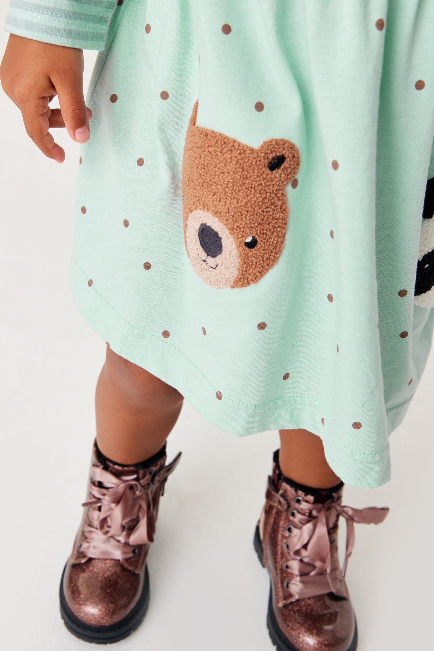 |BabyGirl| Vestido Manga Longa Urso - Verde (3meses-7anos)