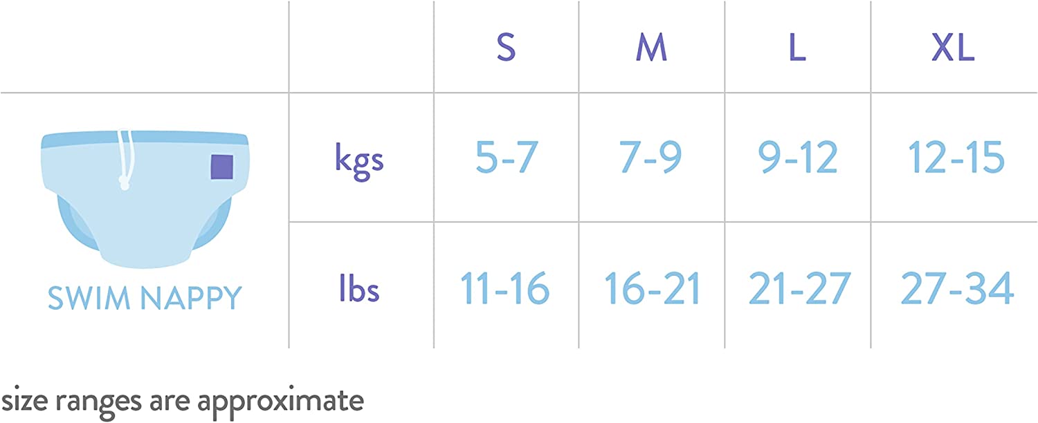 💜 SUPER SOFT - tecido de algodão macio para o bumbum mais confortável e tecido super elástico para bebês na água. Disponível em 4 tamanhos: S (<6 meses), M (6-12 meses), L(1-2 anos), XL (2 anos+).