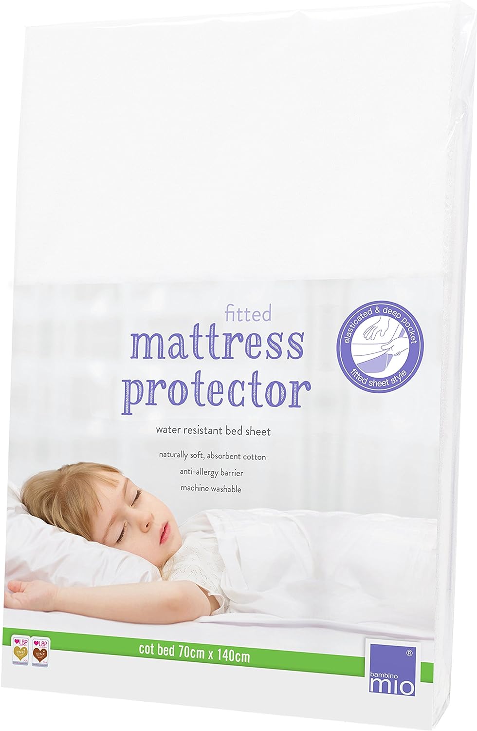 Este protetor de colchão da Bambino Mio é projetado para proteger o seu colchão na área-chave dos inevitáveis acidentes noturnos. O protetor de cama deve ser usado sob o lençol com a superfície de algodão macia para tocar voltada para cima. Isto tem o benefício adicional de eliminar qualquer ruído causado pelo movimento no colchão e oferece uma camada respirável que ajuda a manter uma temperatura constante para a criança. A camada resistente à água também fornece uma barreira contra ácaros que podem causar várias alergias.