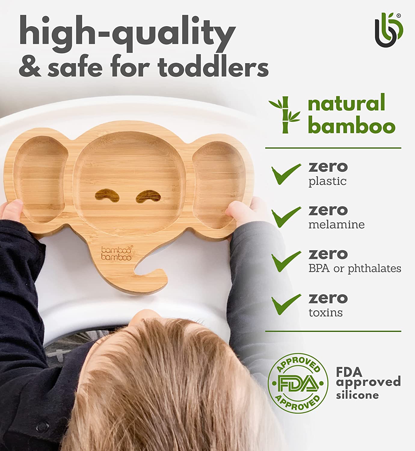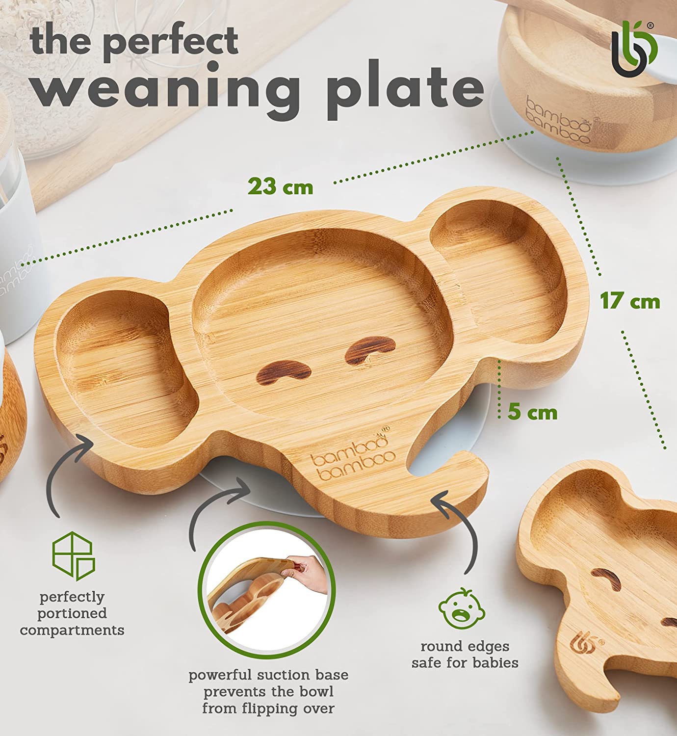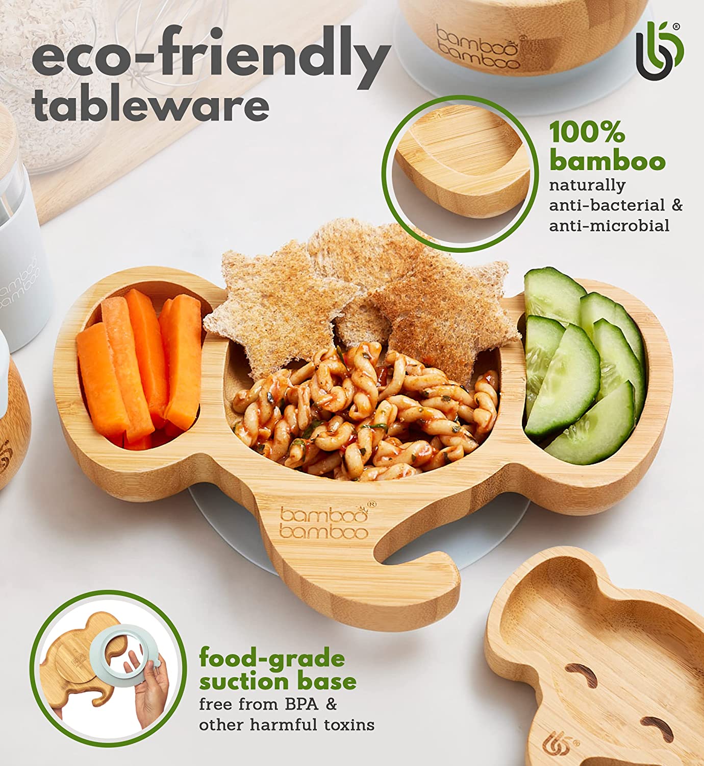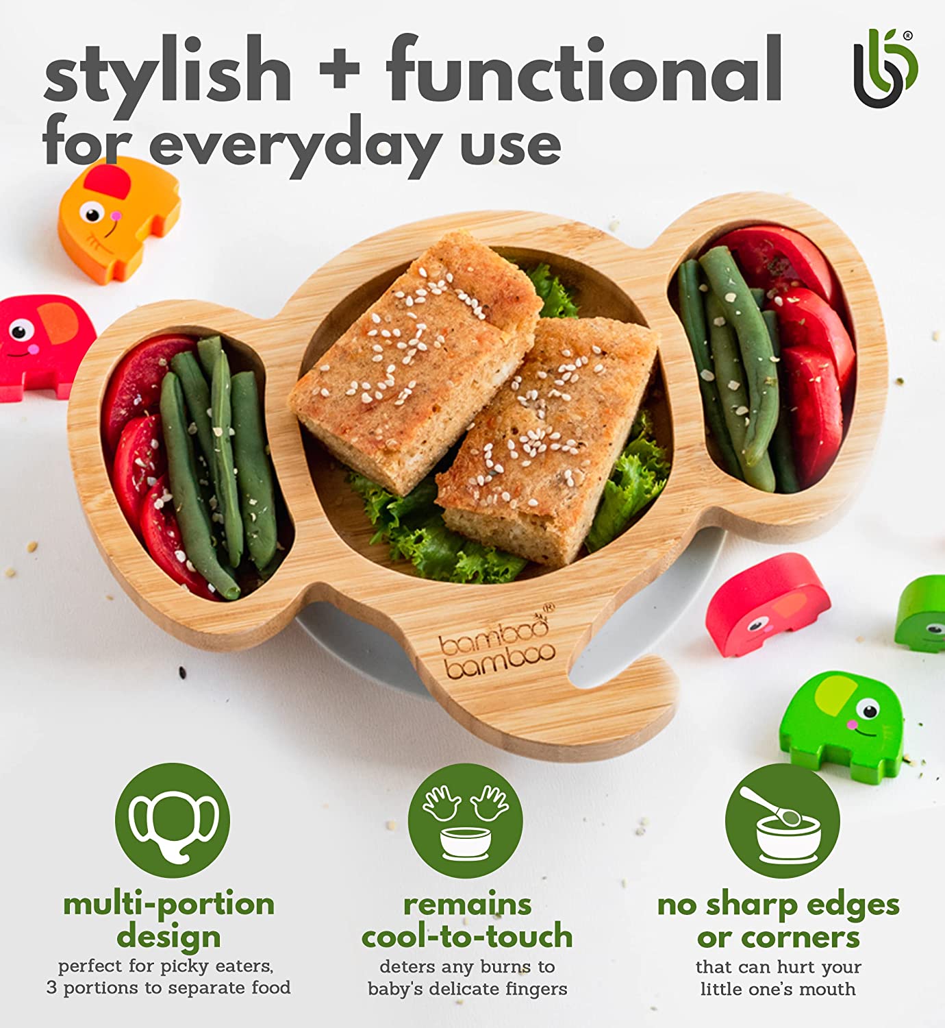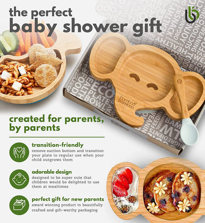 bamboo bamboo - Placa de Bambu para Bebês – Crianças e Crianças com Ventosa para Bebês | Não Tóxico | Legal ao toque | Ideal para Baby-Led Weaning (Elefante, Cinza)