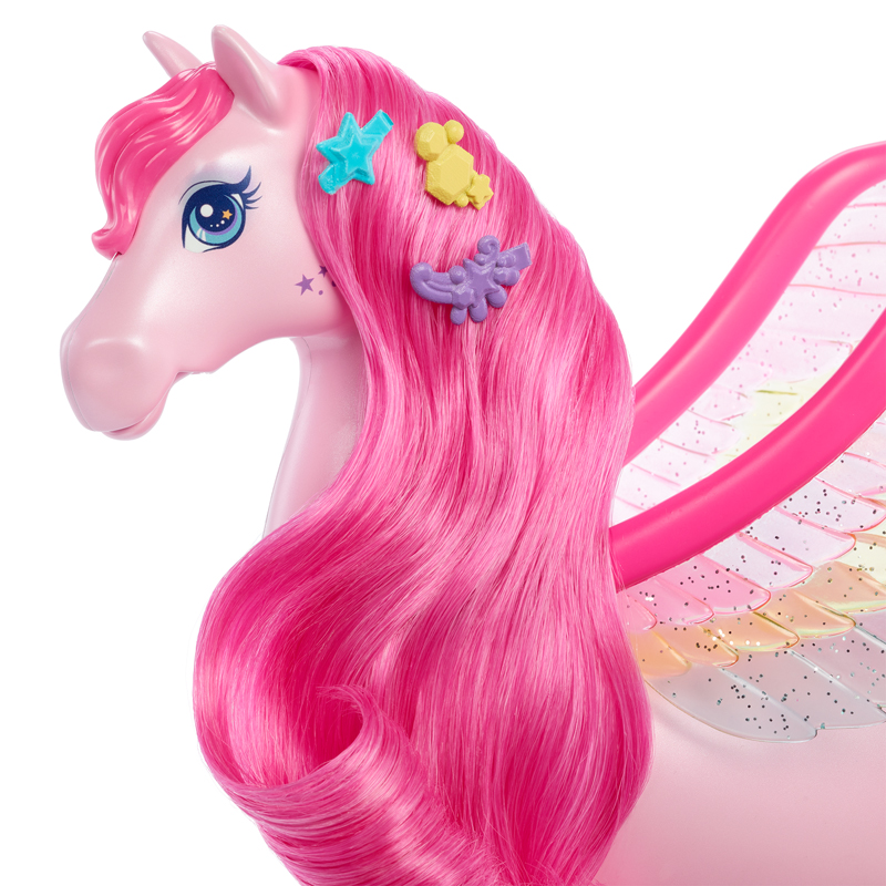 - Deixe a imaginação voar nas asas deste pégaso Barbie rosa!