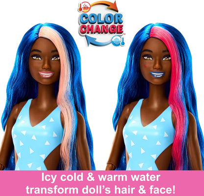 - Use água gelada para revelar a mecha brilhante do cabelo e a maquiagem do rosto da boneca e água morna para mudar de volta para uma surpresa repetida de mudança de cor!