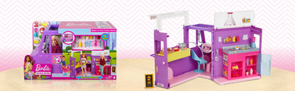 Bip Bip! Abra caminho para um mundo de diversão de food truck com o Playset Barbie Food Truck! Se você adora fazer comida saborosa e servir os clientes, você pode dirigir um food truck!