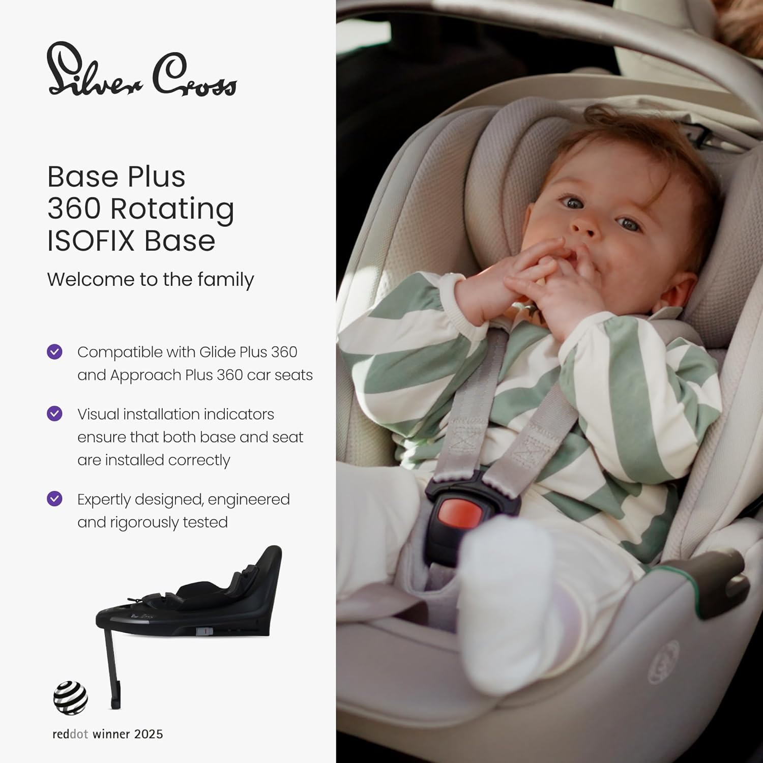 - COMPATÍVEL COM GLIDE PLUS 360 E APPROACH PLUS 360 - Projetada para uso com as cadeirinhas de carro Glide Plus 360 e Approach Plus 360 da Silver Cross (cadeirinhas vendidas separadamente) para viagens seguras e flexíveis desde o nascimento até os 4 anos de idade. Esta cadeirinha infantil oferece uma posição totalmente reclinada para conforto e suporte ideais, seja instalada no seu veículo ou acoplada ao carrinho de bebê.