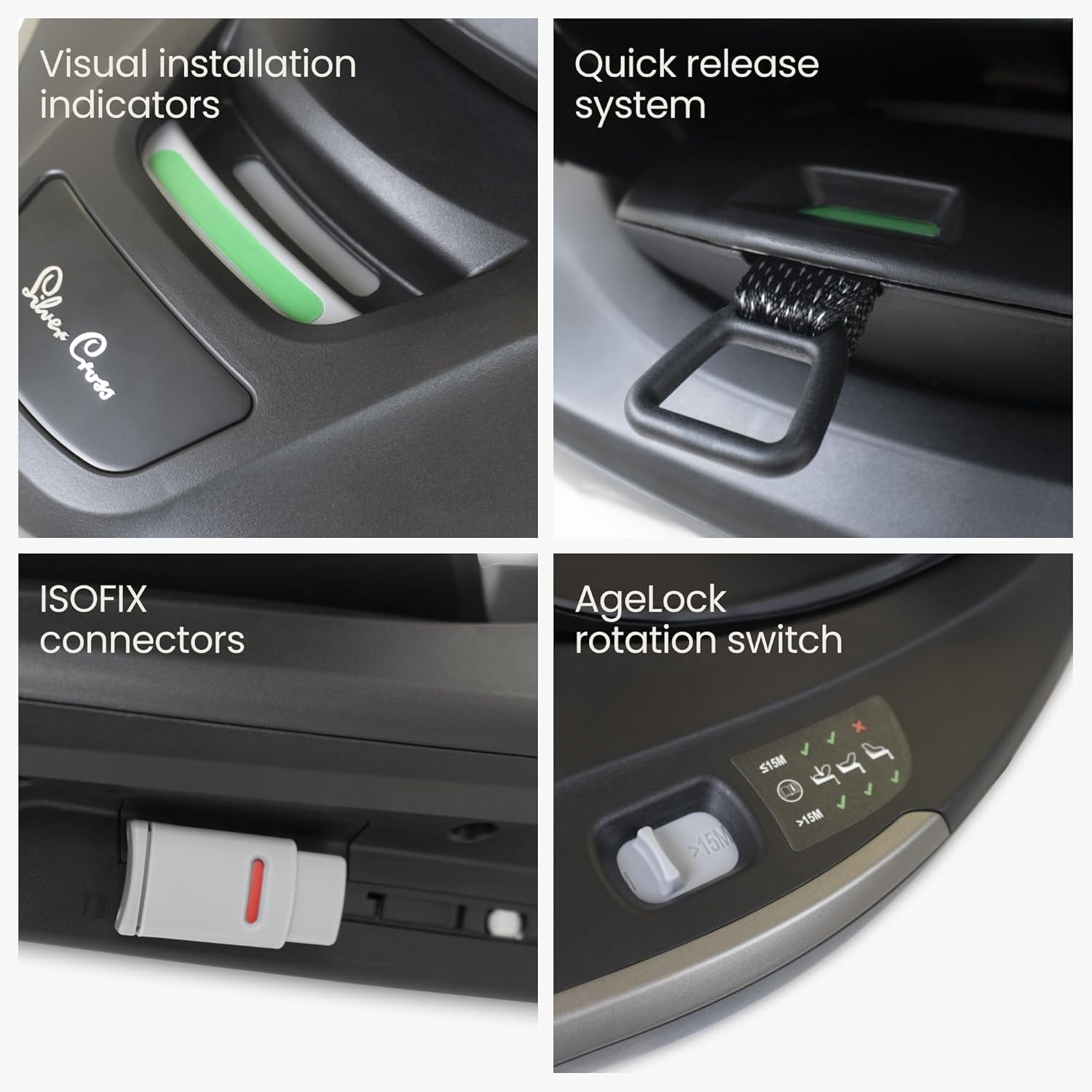 Silver Cross Base Plus com rotação de 360° ISOFIX para cadeiras auto Glide Plus 360 e Approach Plus 360 - Interruptor de rotação AgeLock - Fácil utilização virada para trás ou para a frente - Fixação ISOFIX segura