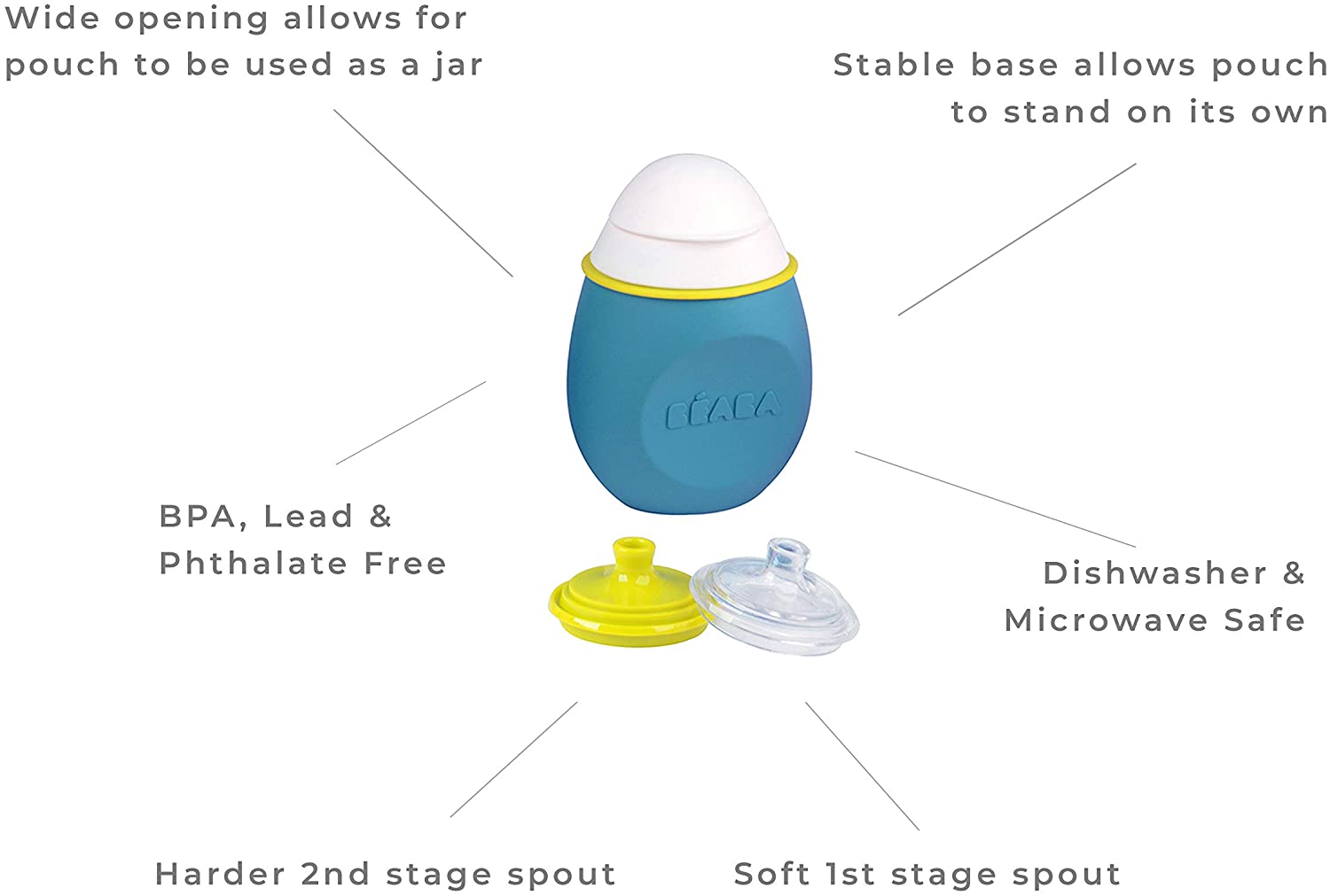Vendido com 2 acessórios: um bico infantil de silicone (6-12 meses), forte e infantil (a partir dos 12 meses)