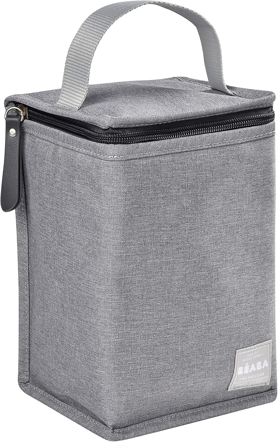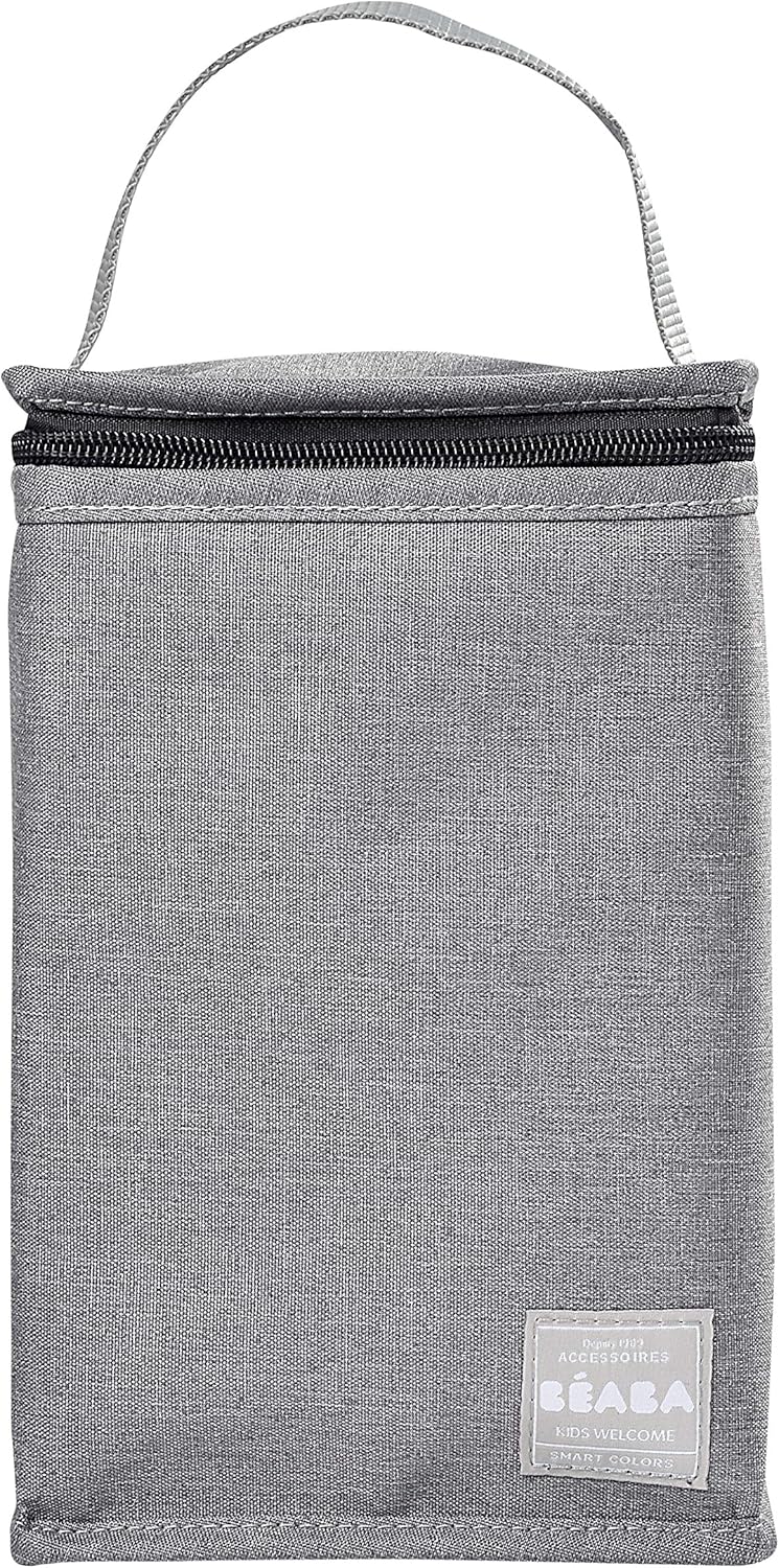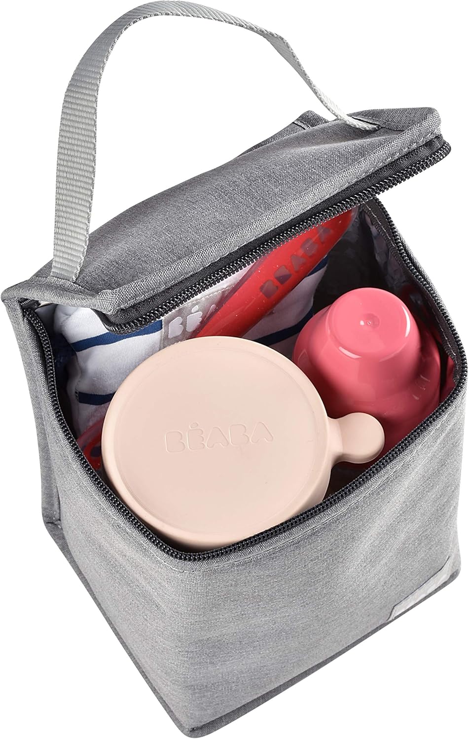 BÉABA - Bolsa Isolada para Refeições para Bebês - Grande Capacidade - Armazenamento de Garrafa Térmica - Bolsa para transporte de refeições completas - Dobrável - Material Macio Impermeável - Cinza