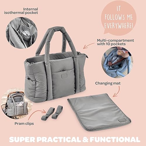 - ACESSÓRIOS INCLUÍDOS: trocador acolchoado removível, bolso isotérmico e ganchos para carrinho