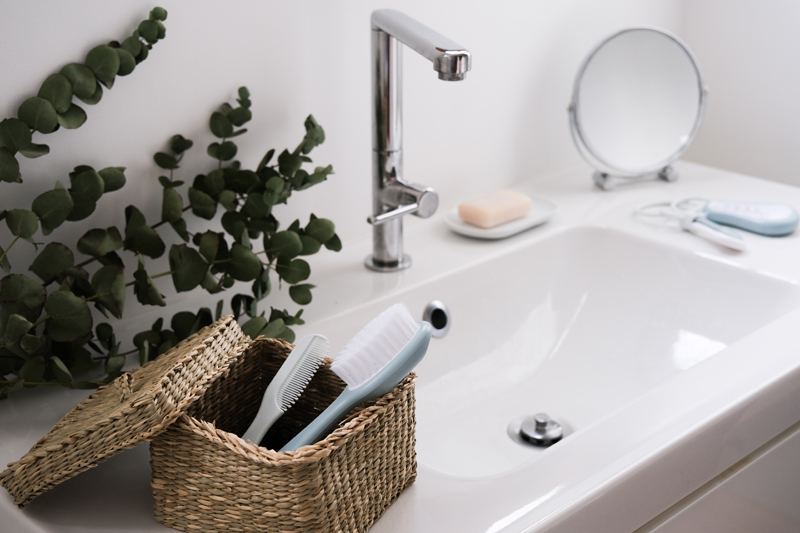 Termômetro, cortador de unhas de bebê, escova e pente podem ser anexados ao anel de coordenação, facilitando pendurar e armazenar e garantindo que tudo seja mantido seguro juntos.