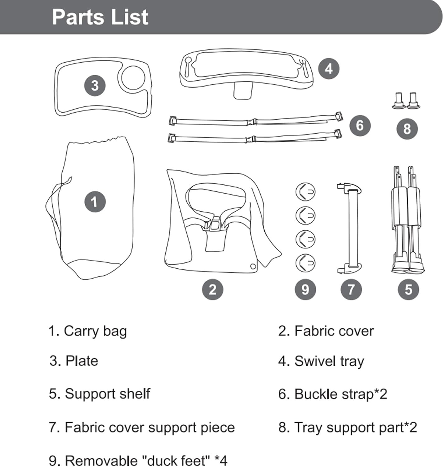 - [Material mais seguro] A cadeira alta para bebês tem um design leve. Estrutura de aço resistente com assento em lona cinza e bandeja de plástico lavável na máquina de lavar louça.