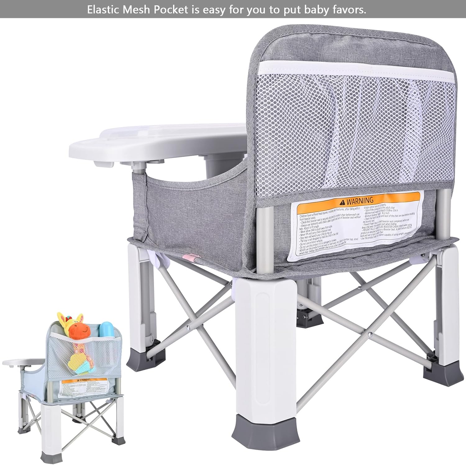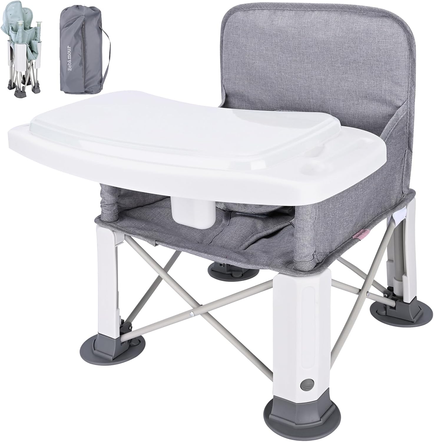 Bebamour Cadeira alta portátil dobrável para bebês , ideal para uso externo, com bandeja removível e bolsa de armazenamento. Cor: cinza.