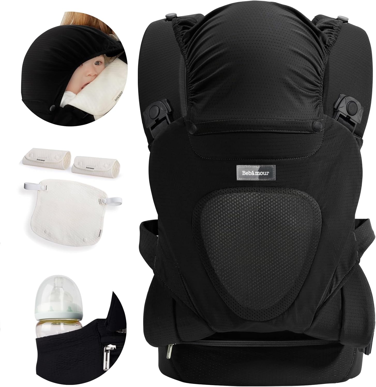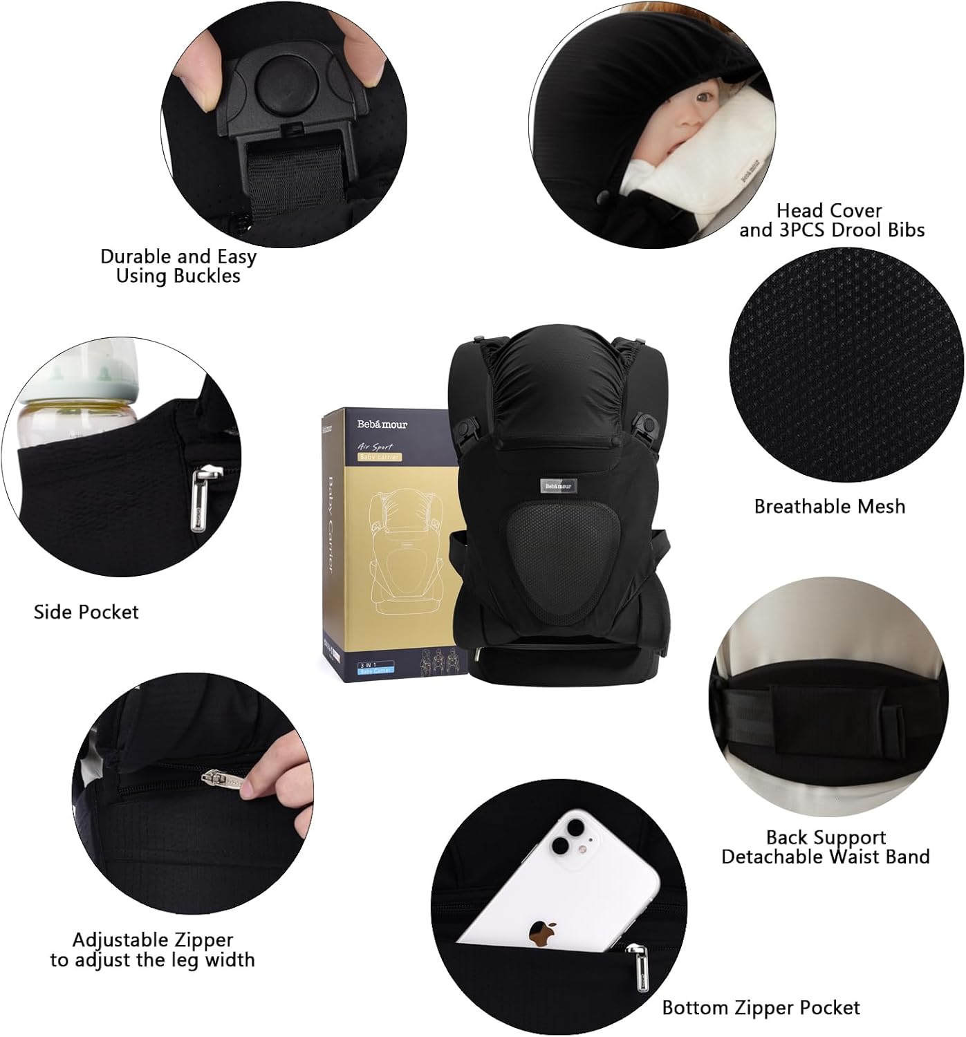 Bebamour Porta-bebês Porta-bebês dianteiro e traseiro com 3 peças de babadores, capa de cabeça, acolchoamento de cintura