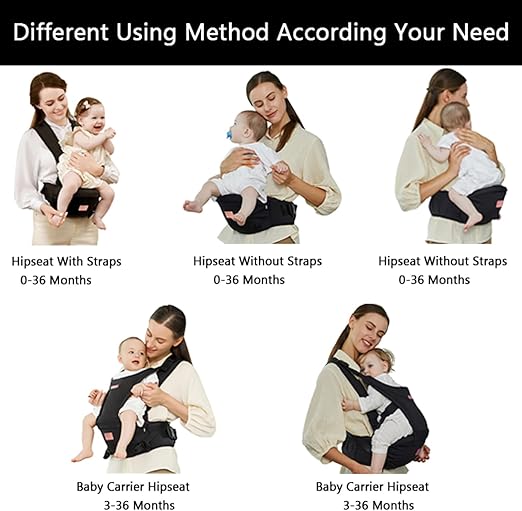 【Fivelas duplas mais seguras】Existem fivelas deslizantes em ambos os lados do assento do porta-bebês para fortalecer a força de levantamento e tração, mesmo se você usar o assento único para segurar o bebê, reduzindo o alcance de queda.