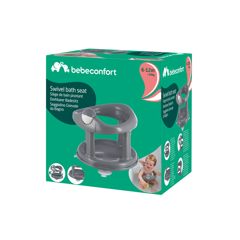 O assento de banho giratório Bebeconfort é um assento de banho com formato ergonômico que permite que seu bebê se sente confortavelmente e com o suporte extra necessário para o banho. Isso é ideal para quando você já está tomando banho ou tomando banho e precisa das duas mãos livres para dar banho no bebê.