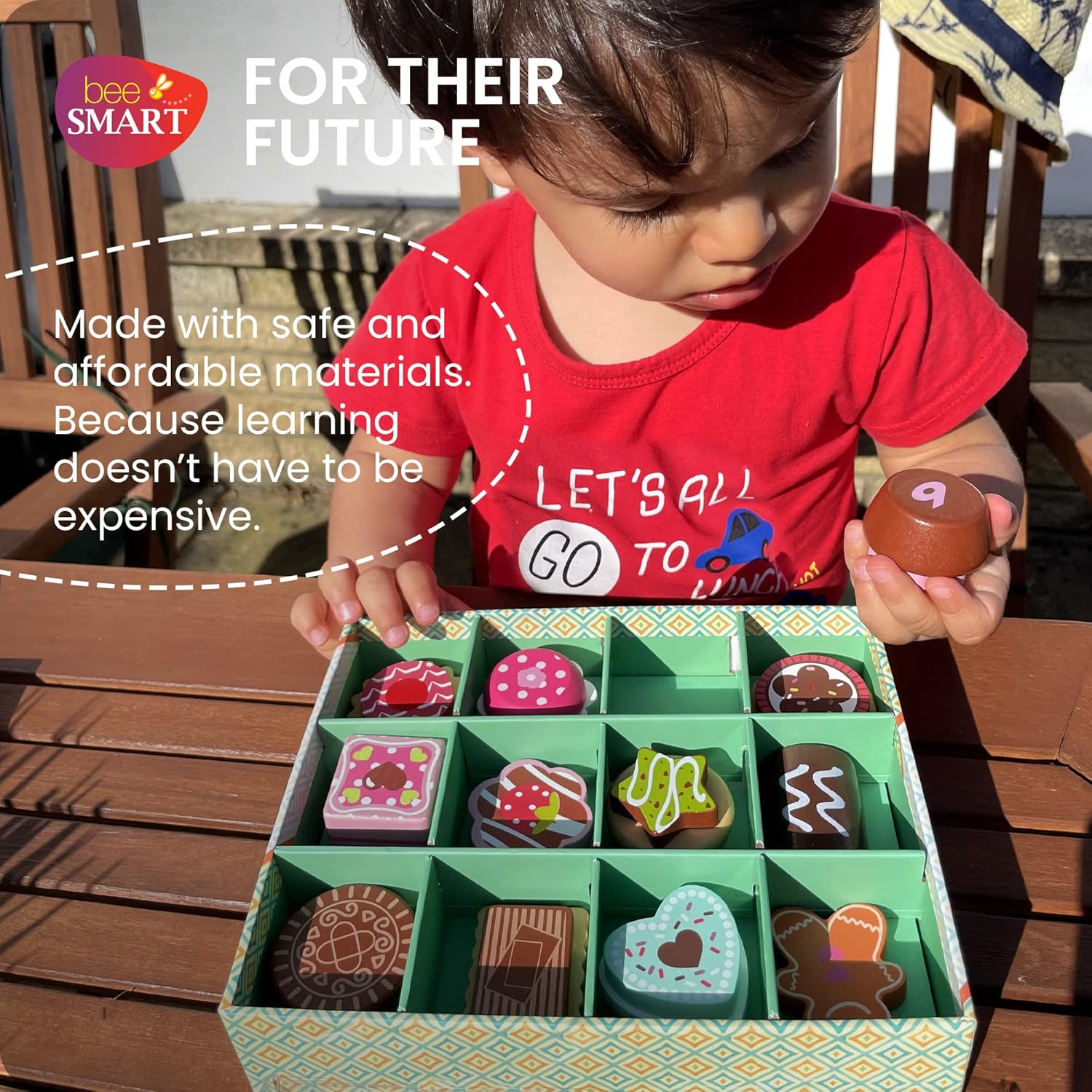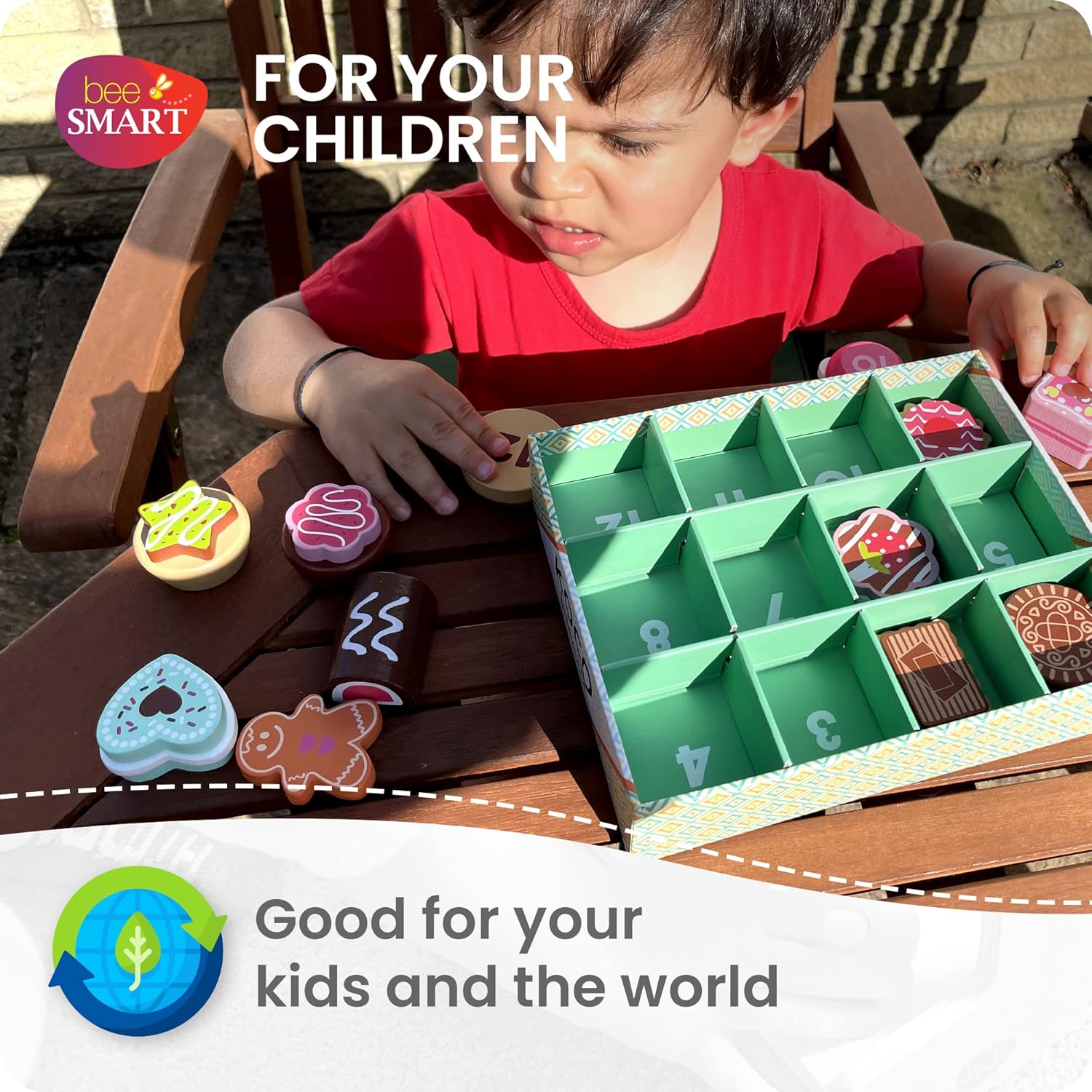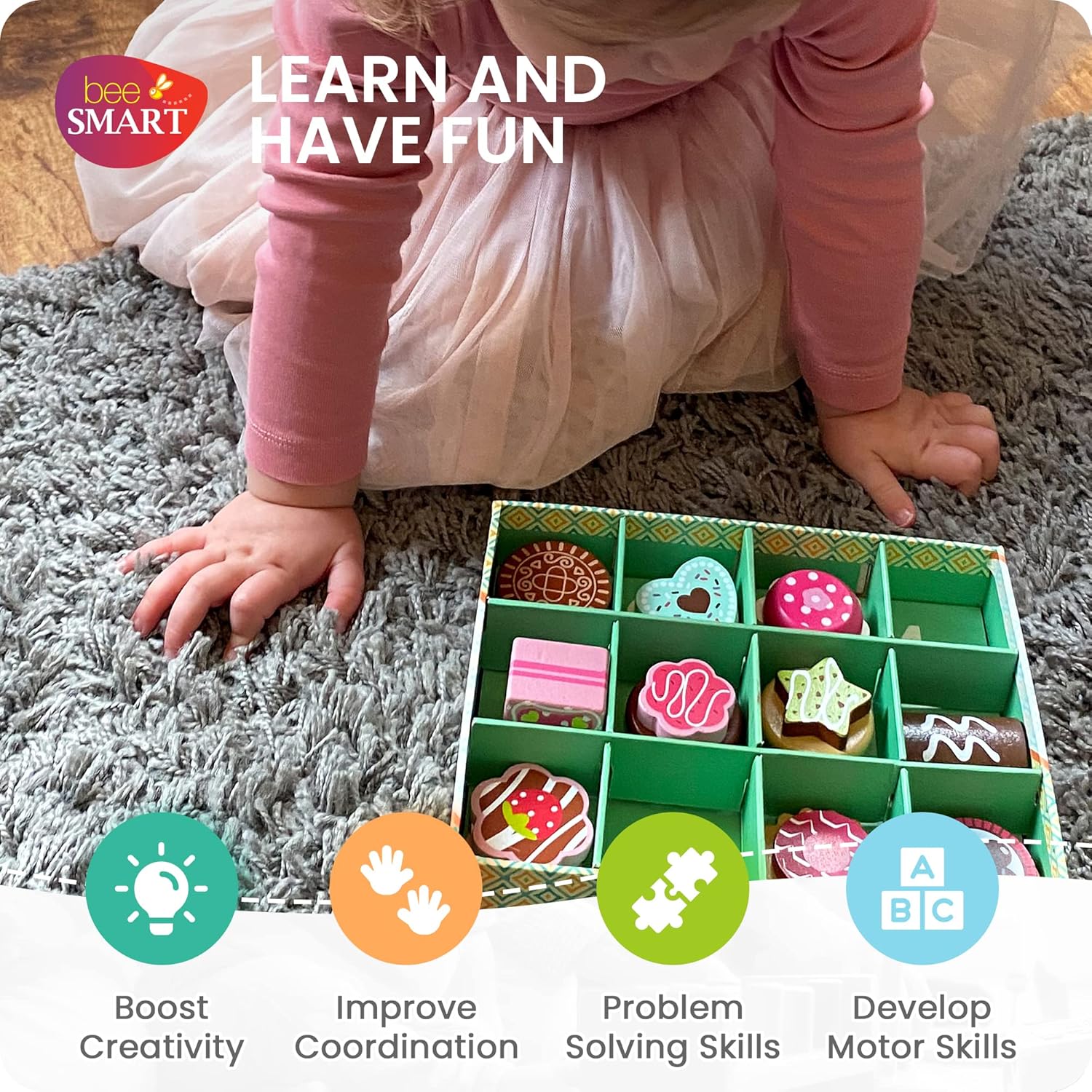 Bee Smart Caixa de biscoitos de madeira Tea Party | Playset infantil finge brincar de comida com caixa de armazenamento de papelão resistente | Conjunto de cozinha para dramatização infantil e brincadeiras imaginárias.