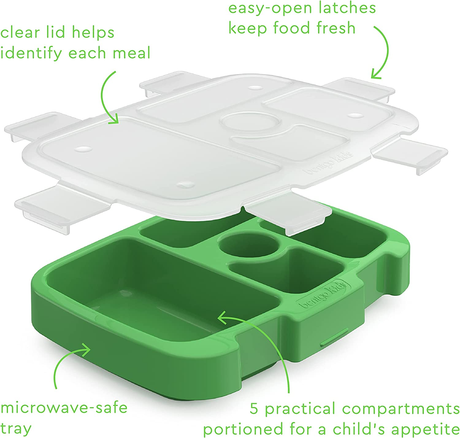 PORÇÕES PARA CRIANÇAS: Possui 5 compartimentos que são repartidos perfeitamente para o apetite do seu filho. Encha suas barrigas com frutas, vegetais, lanches e até molhos! A tampa transparente se encaixa perfeitamente em cada compartimento, para que as refeições e lanches do seu filho permaneçam frescos por mais tempo.