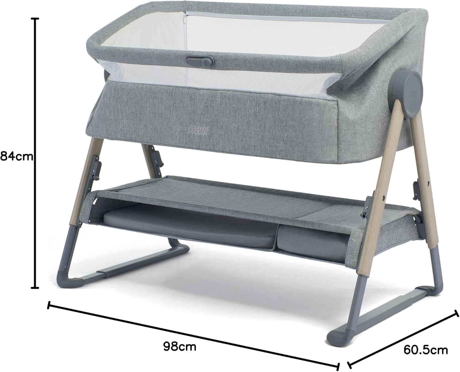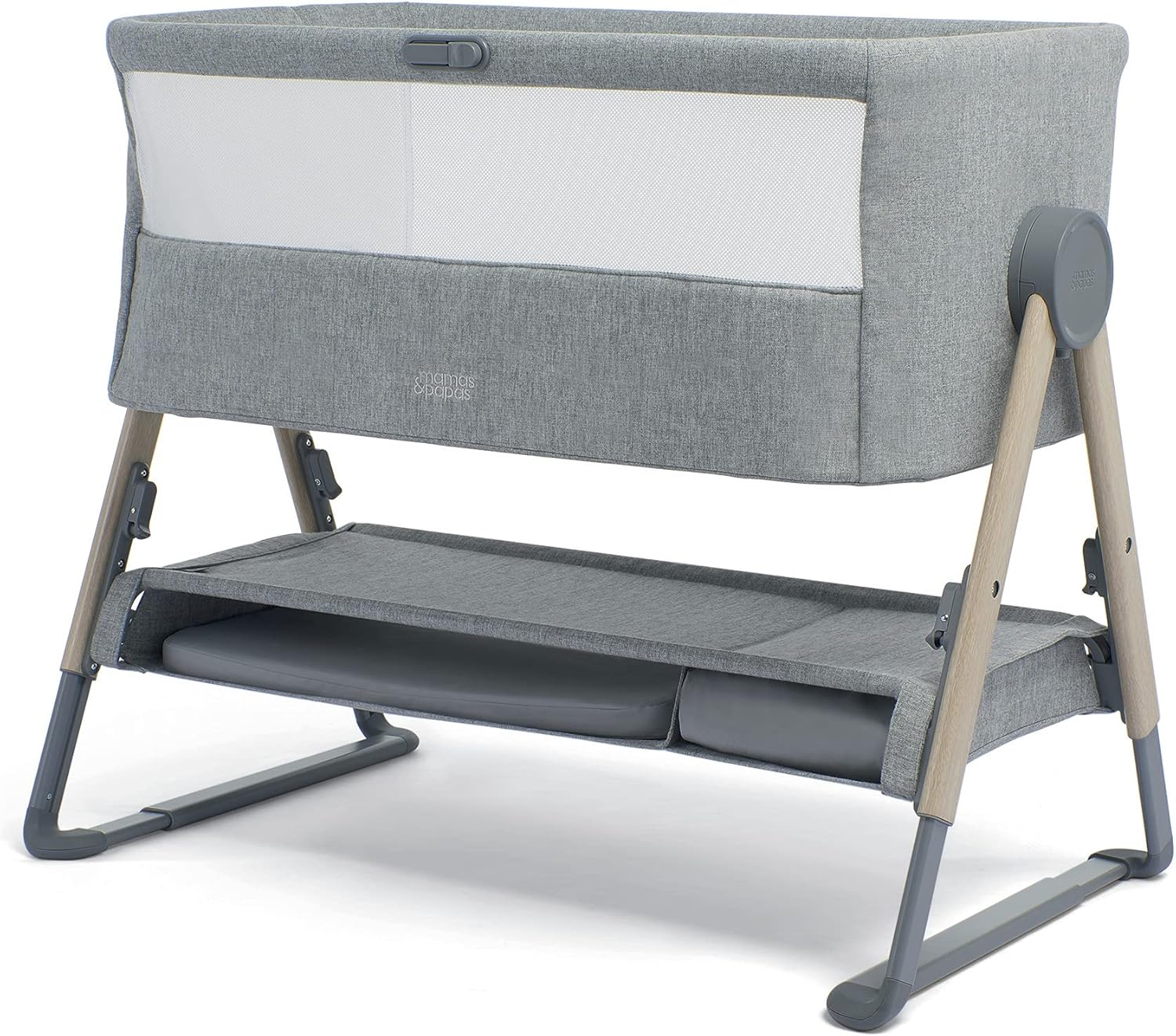Berço de cabeceira Lua Mamas & Papas, berço amovível, laterais rebatíveis, inclui colchão, 0-6 meses, cinzento