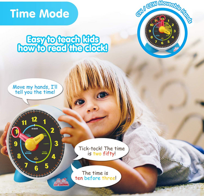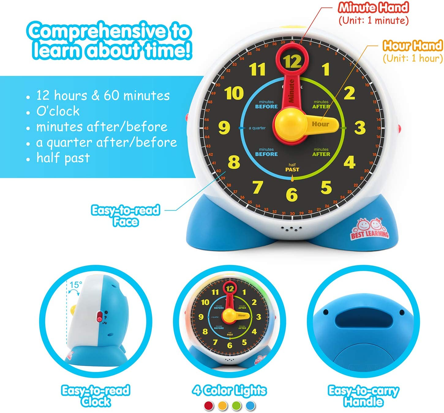 BEST LEARNING Relógio de aprendizagem - Conversa educacional Aprenda a contar as horas Ensinando Brinquedo luminoso com Quiz e Música Modo de suspensão - Bebês e crianças de 3, 4, 5, 6 anos Presente de presente para meninos e meninas