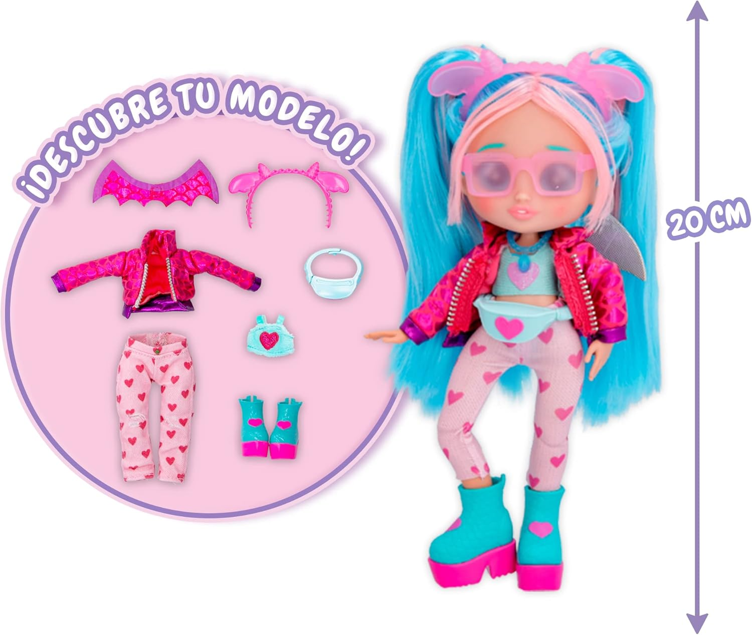 BFF by Cry Babies S2 Bruny Boneca colecionável de moda com cabelo comprido, roupas de tecido e 10 acessórios - Brinde de brinquedo para meninas e meninos +5 anos