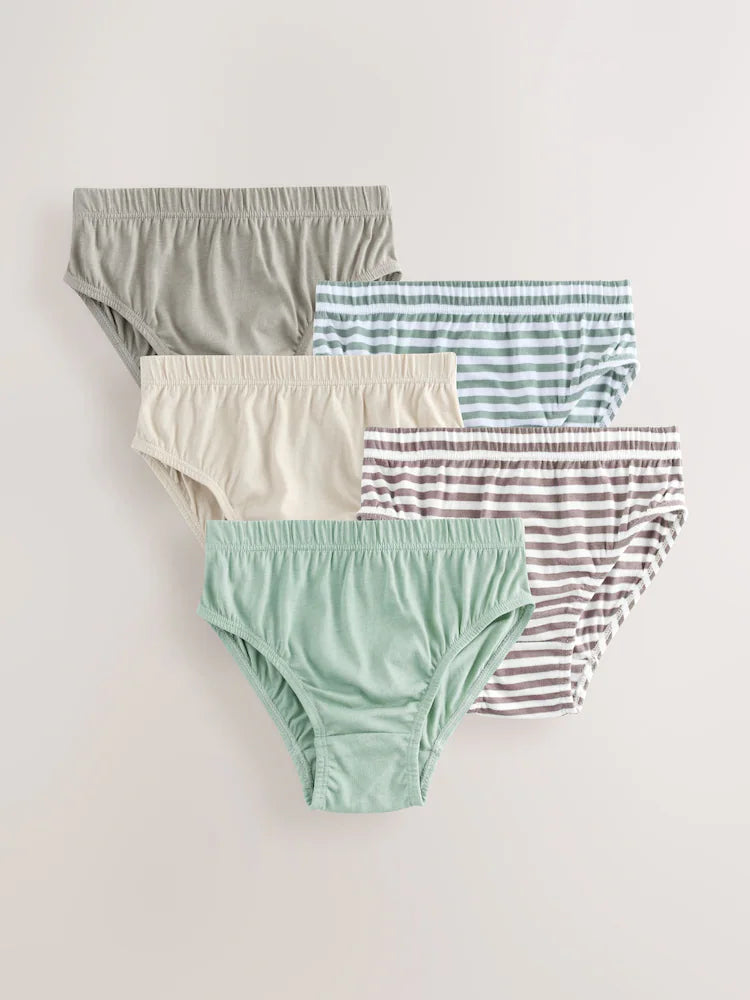 |BigBoy| Cuecas Estampadas 100% Algodão Listradas Verde/Cru, Pacote Com 5 (1,5 a 10 anos)
