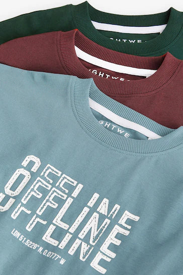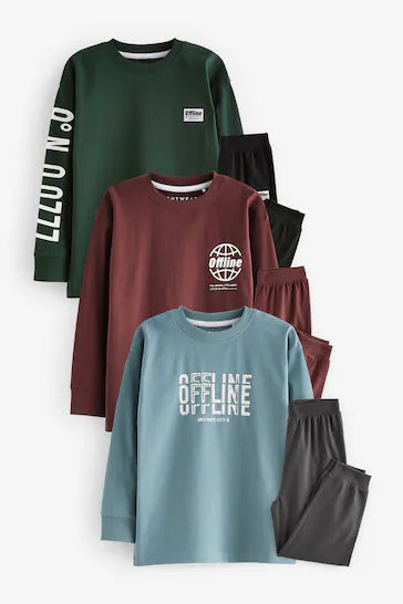 |BigBoy| Pacote De 3 Pijamas Com Texto Cinza/Azul/Vermelho (3-16 anos)
