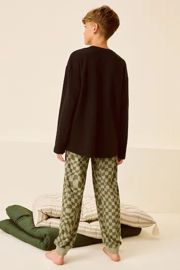 |BigBoy| Pijama De Lã Simples e Aconchegante Xadrez Preto/Verde (3 a 16 anos)
