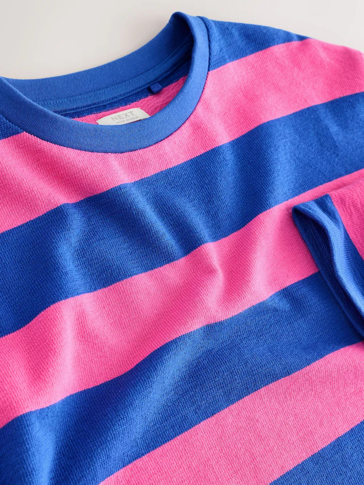 |BigGirl| Blusa Texturizada De Manga Comprida Com Listras Rosa/Azul (3-16 anos)