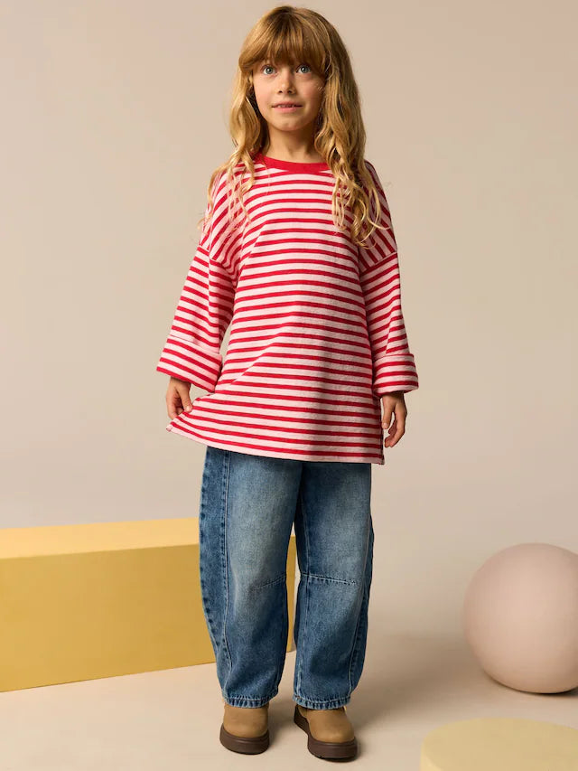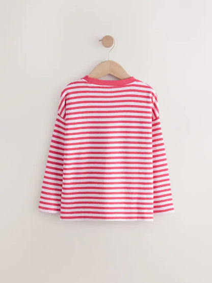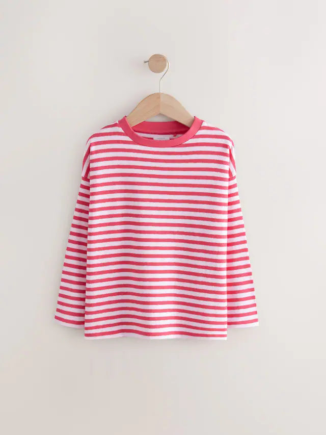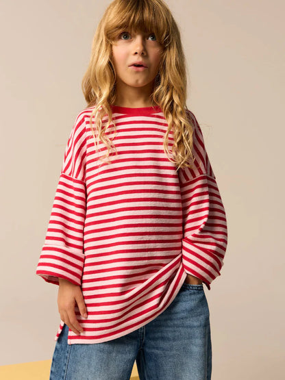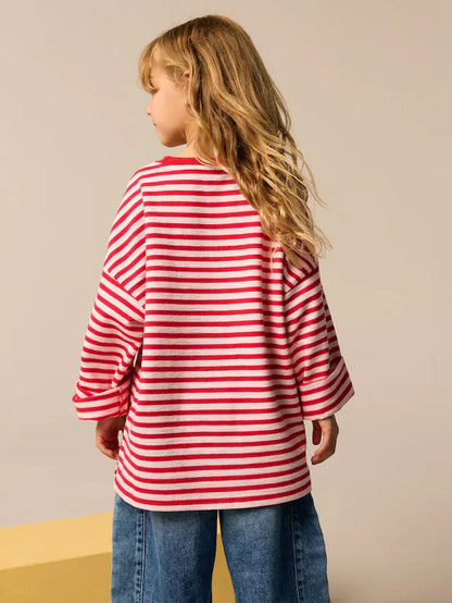 |BigGirl| Camiseta 100% Algodão Texturizada De Manga Comprida Grande Vermelha/Rosa (3-16 anos)