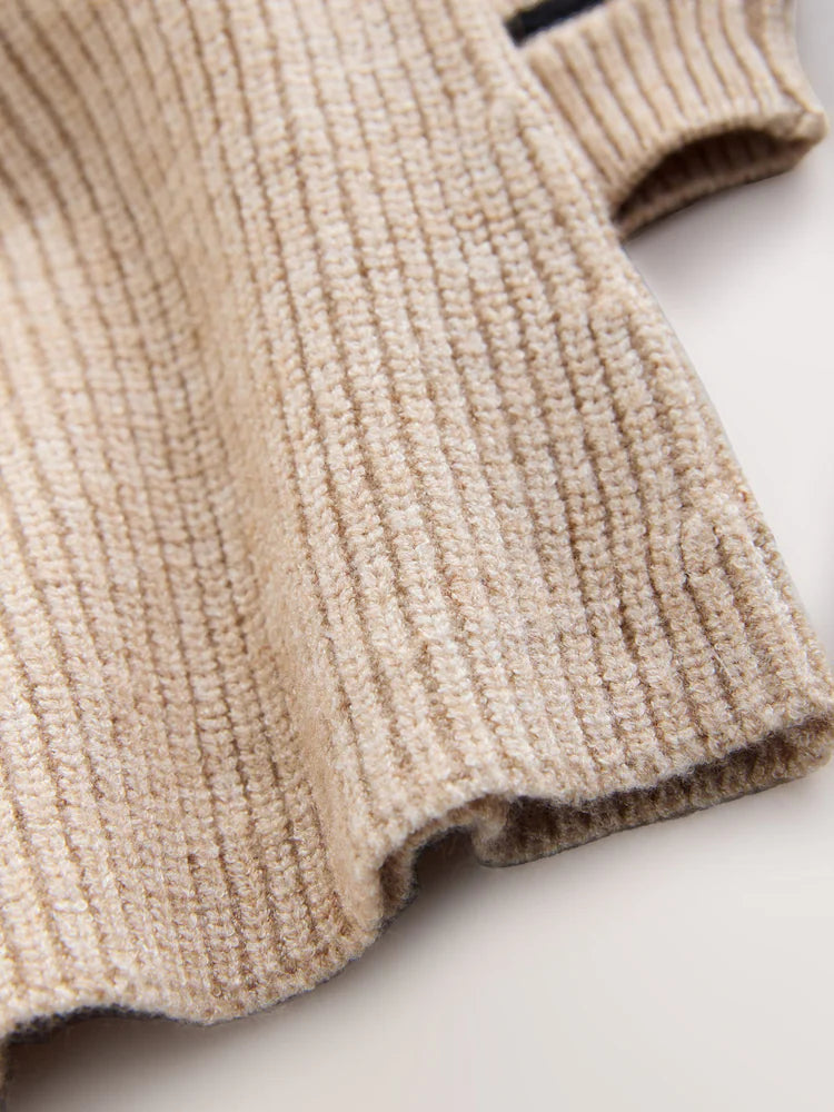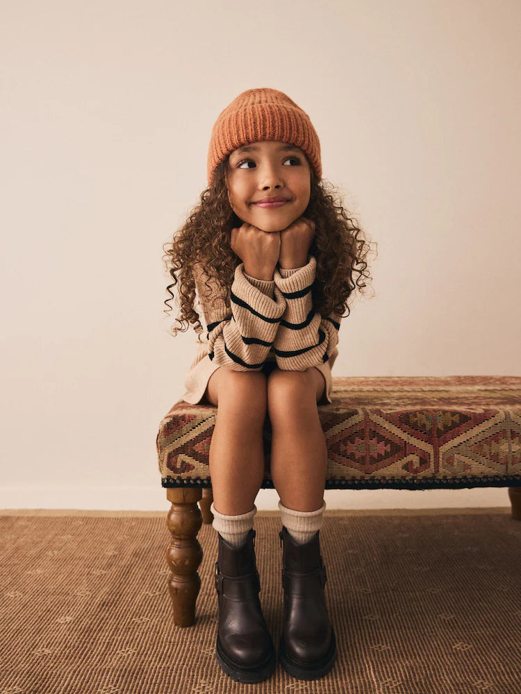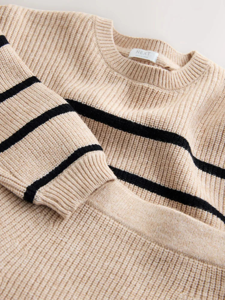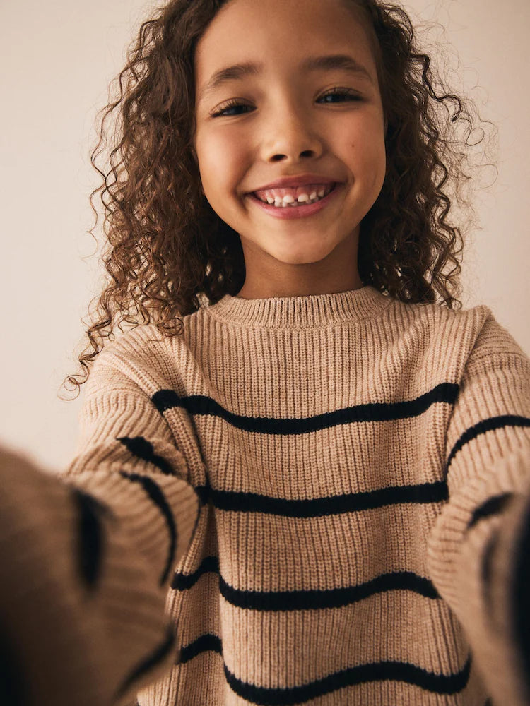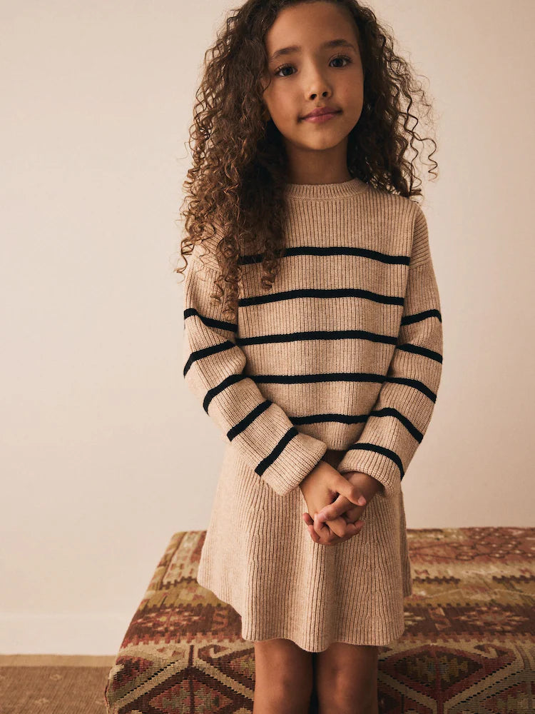 |BigGirl| Conjunto De Suéter e Saia Listrados Em Malha Marrom Bege (3-16 anos)