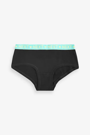 |BigGirl| Pacote de 7 Hipsters elásticos pretos brilhantes (2 a 16 anos)