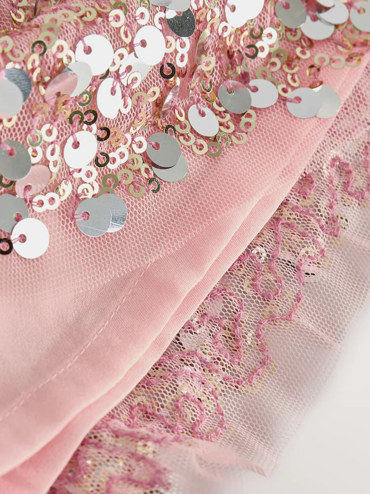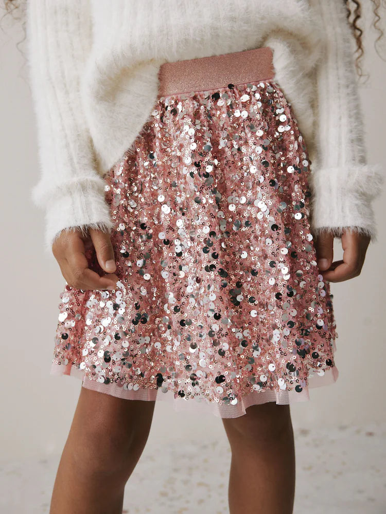 |BigGirl| Saia Bolha Com Lantejoulas Douradas Champanhe (3-16 anos)