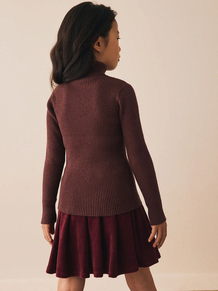 |BigGirl| Suéter De Malha Com Gola Alta Marrom Chocolate (3-16 anos)