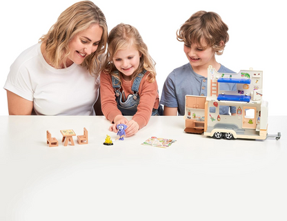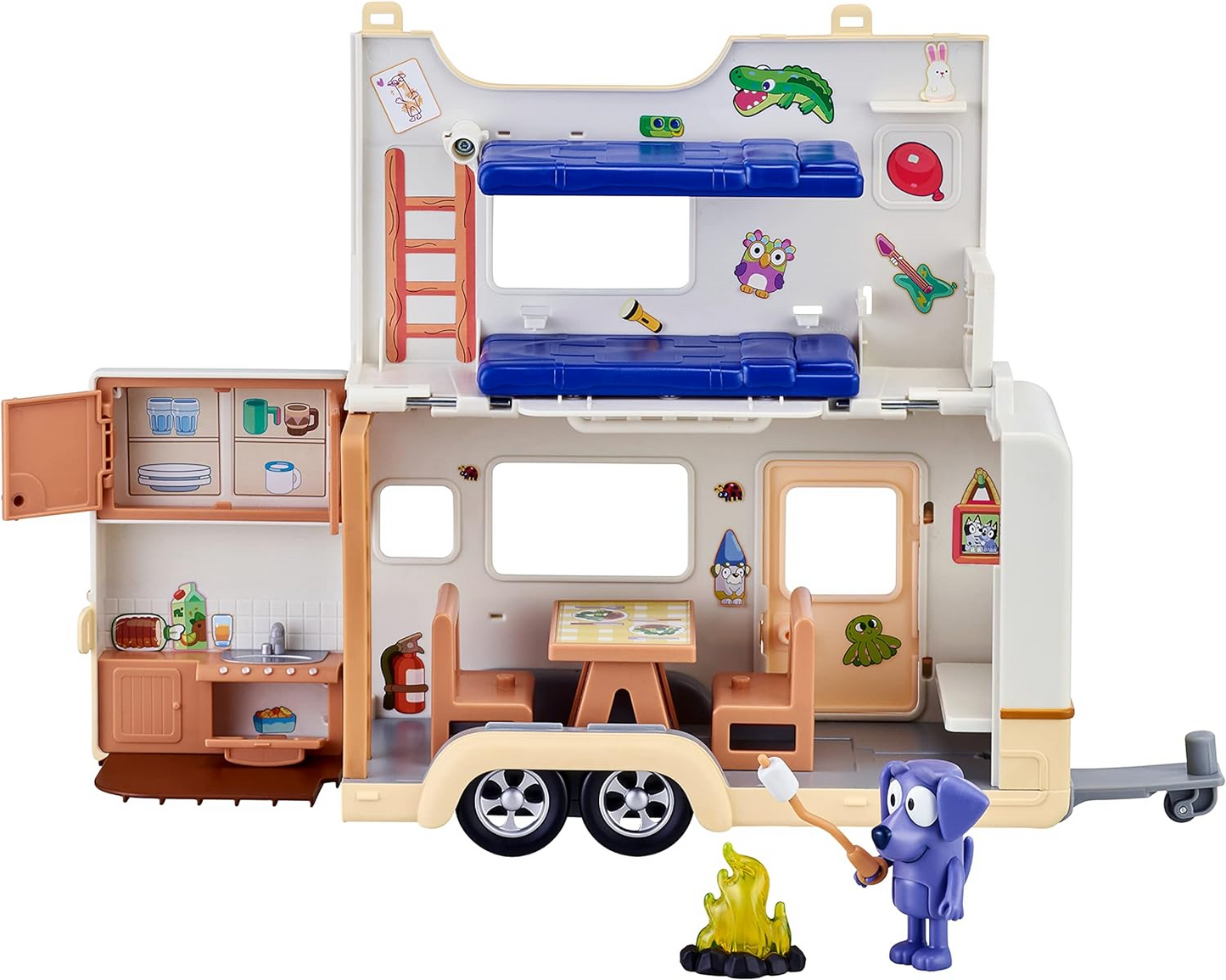 - Vá em uma aventura de caravana com a família e amigos de Bluey no Bluey's Caravan Adventure Playset.