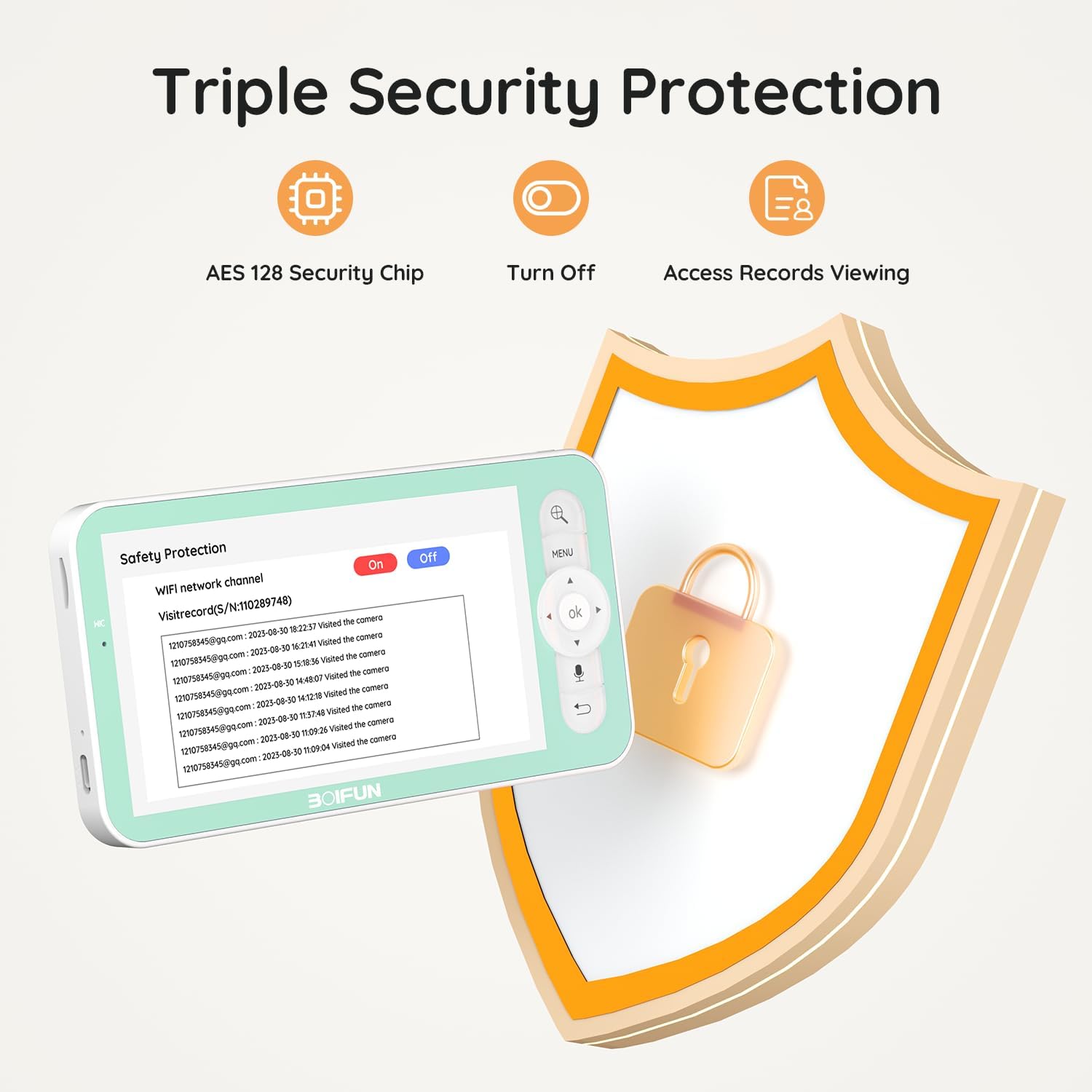 - 【Observação: câmera adicional para BOIFUN Baby 6T】O monitor de bebê BOIFUN Baby 6T pode suportar até duas câmeras para serem usadas na unidade dos pais ao mesmo tempo.