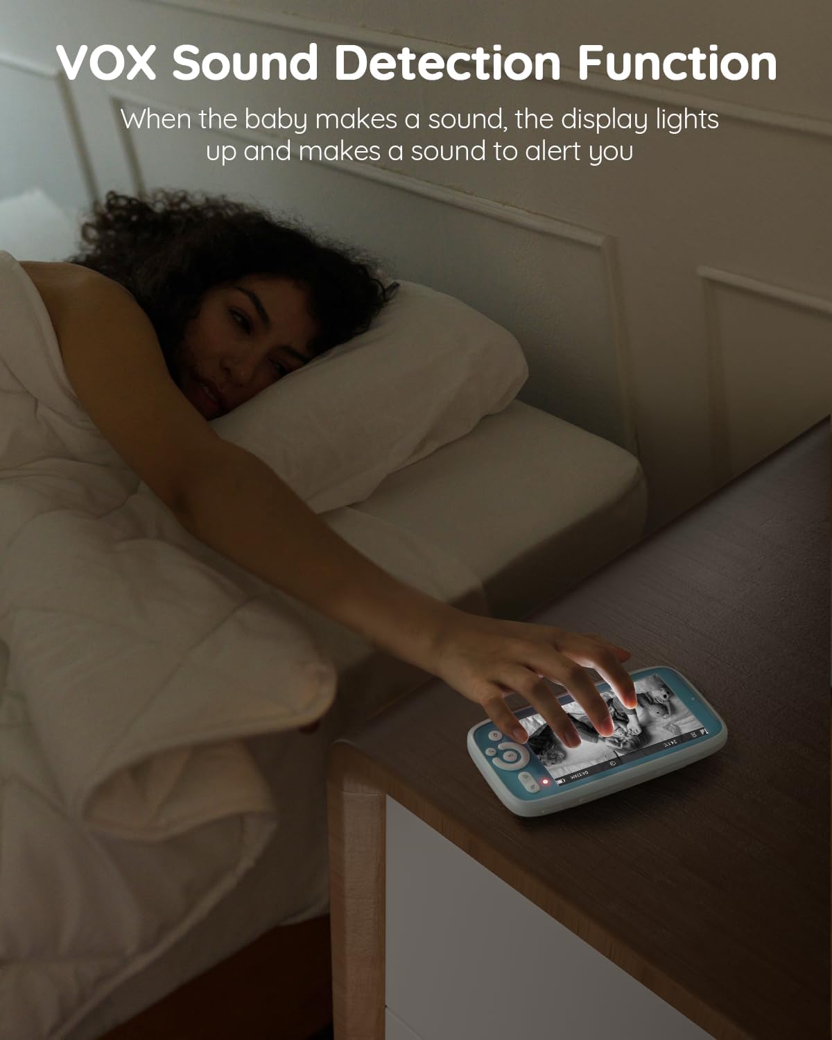 - [๐๐๐ & ๐๐ฐ๐จ-๐ฐ๐๐ฒ ๐๐ฎ๐๐ข๐จ] No modo VOX, a tela do monitor de vรญdeo para bebรชs serรก ativada automaticamente quando o som for detectado, permitindo que vocรช faรงa o que vocรช ama em vez de ficar olhando para a tela. Com a conveniรชncia do รกudio bidirecional, vocรช pode ler um livro ou assistir a um programa enquanto permanece conectado ao seu bebรช.