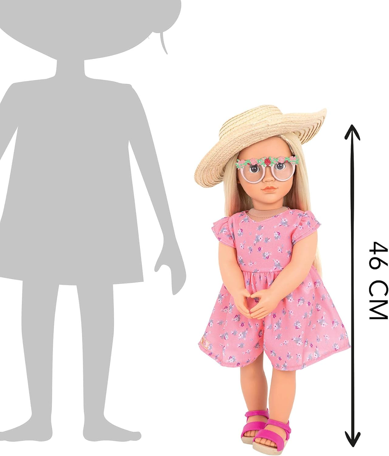 Boneca Our Generation com vestido estampado floral e chapéu de sol, Dália