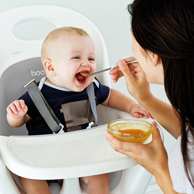 SWAP é uma colher de duas pontas com uma ponta macia e outra rígida, perfeita para quem come pela primeira vez. (Seu bebê vai deixar você saber qual lado da colher funciona melhor.)
