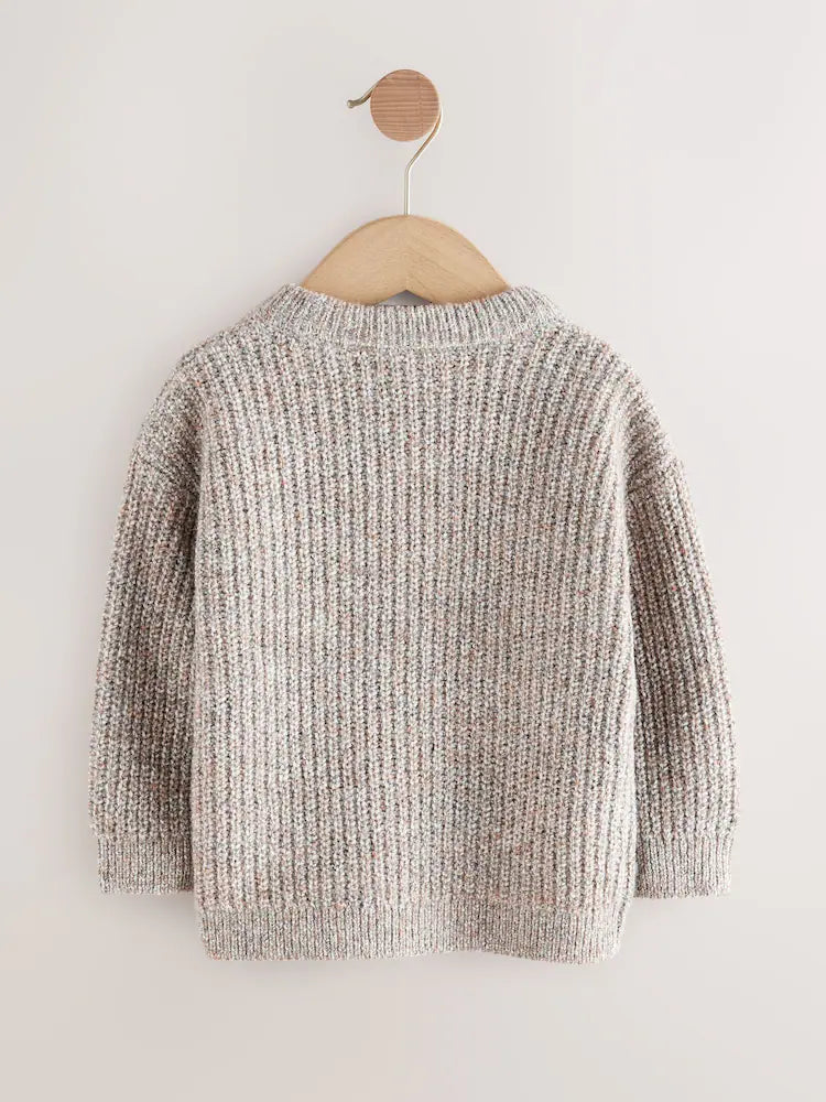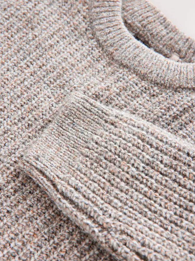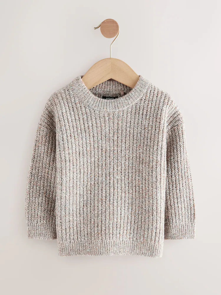 |Boy| Blusa De Gola Redonda Em Tricô Neutro (3 meses a 7 anos)